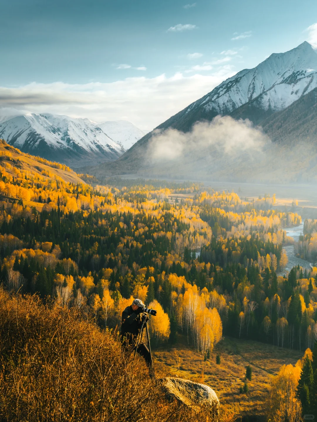 🍂9月的金秋是喀纳斯和禾木的招牌,10月就开始下雪了,所以一定要在9月初去看一场金色美景。