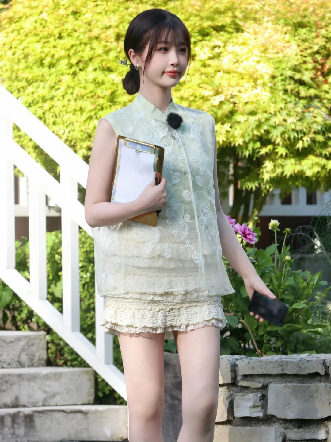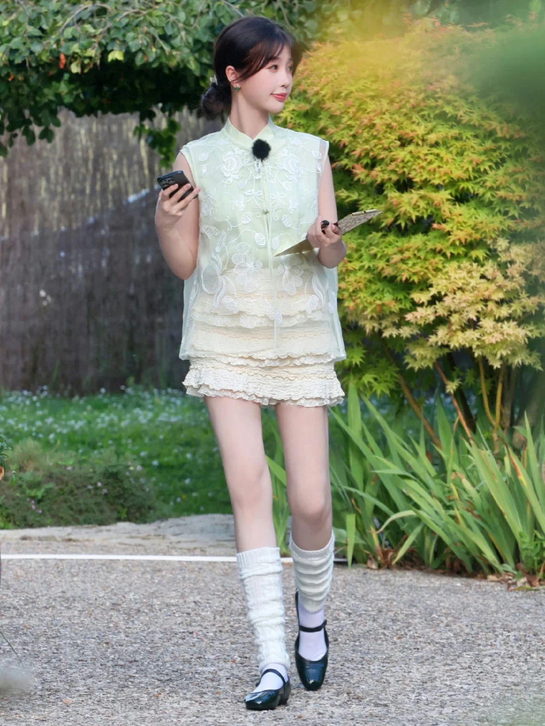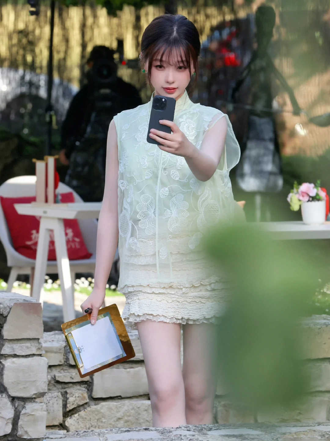 虞书欣《中餐厅8》新中式穿搭,好会选单品这件浅绿色真的自带清凉感氛围,清新甜美又好看的一套搭配!!