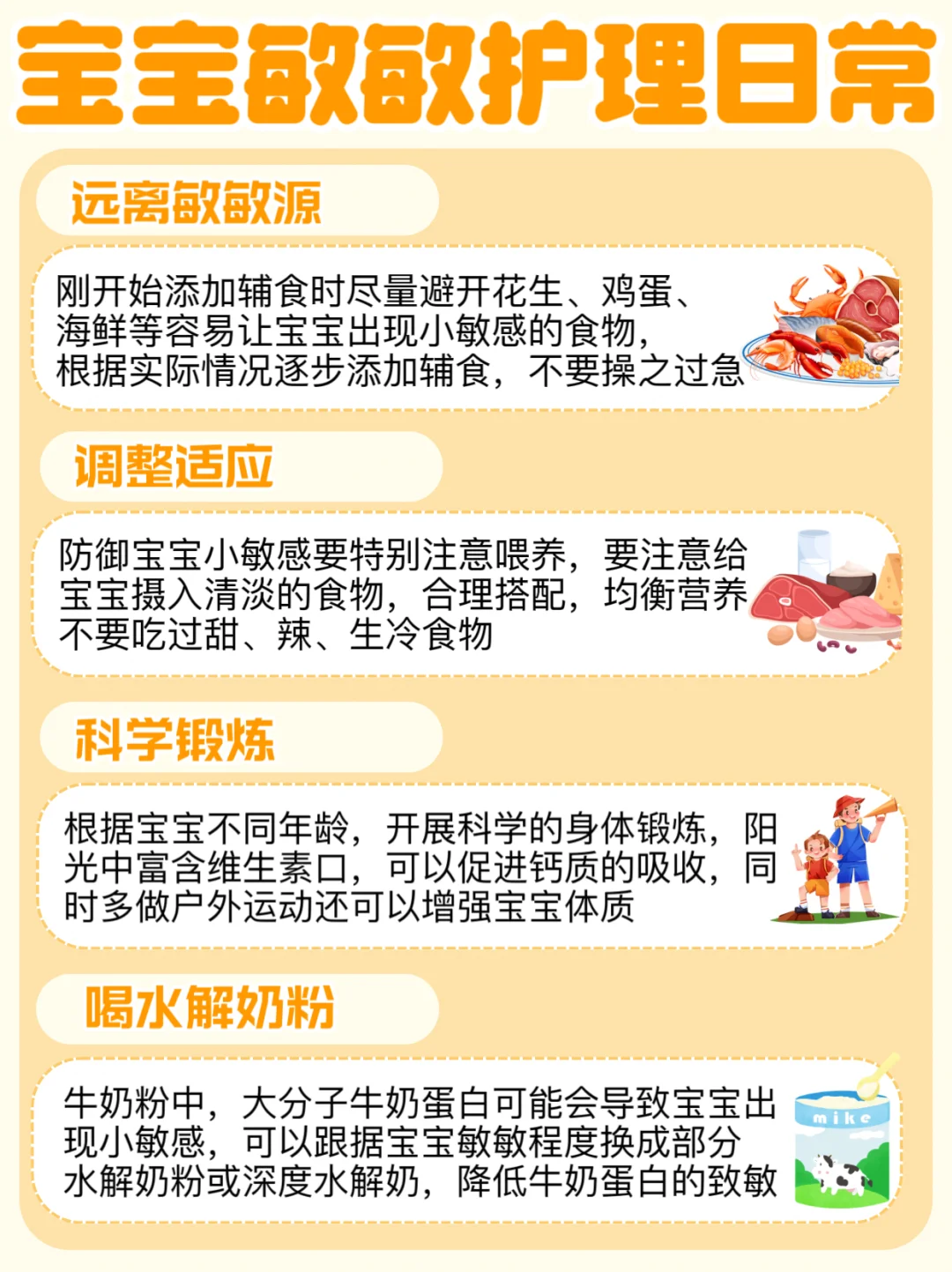 1. ❌敏源大逃杀:海鲜、小麦、牛奶、坚果、芒果、花粉、灰尘、宠物毛发,这些日常小怪兽要躲远!🛡️