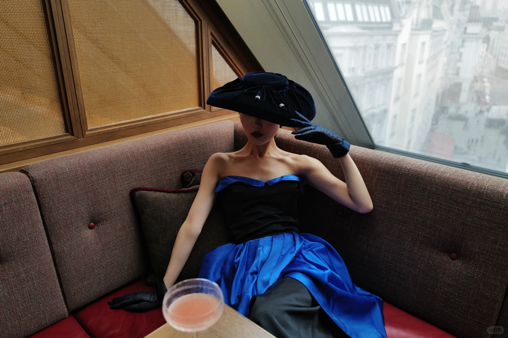 收藏了很久的蓝色古董礼服 来自巴黎 Pierre Cardin 60年代的秀款 非常vogue复古画报女郎的剪裁设计 真的很搭维也纳这座优雅老城