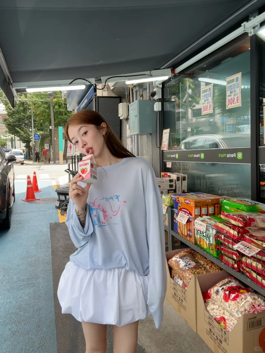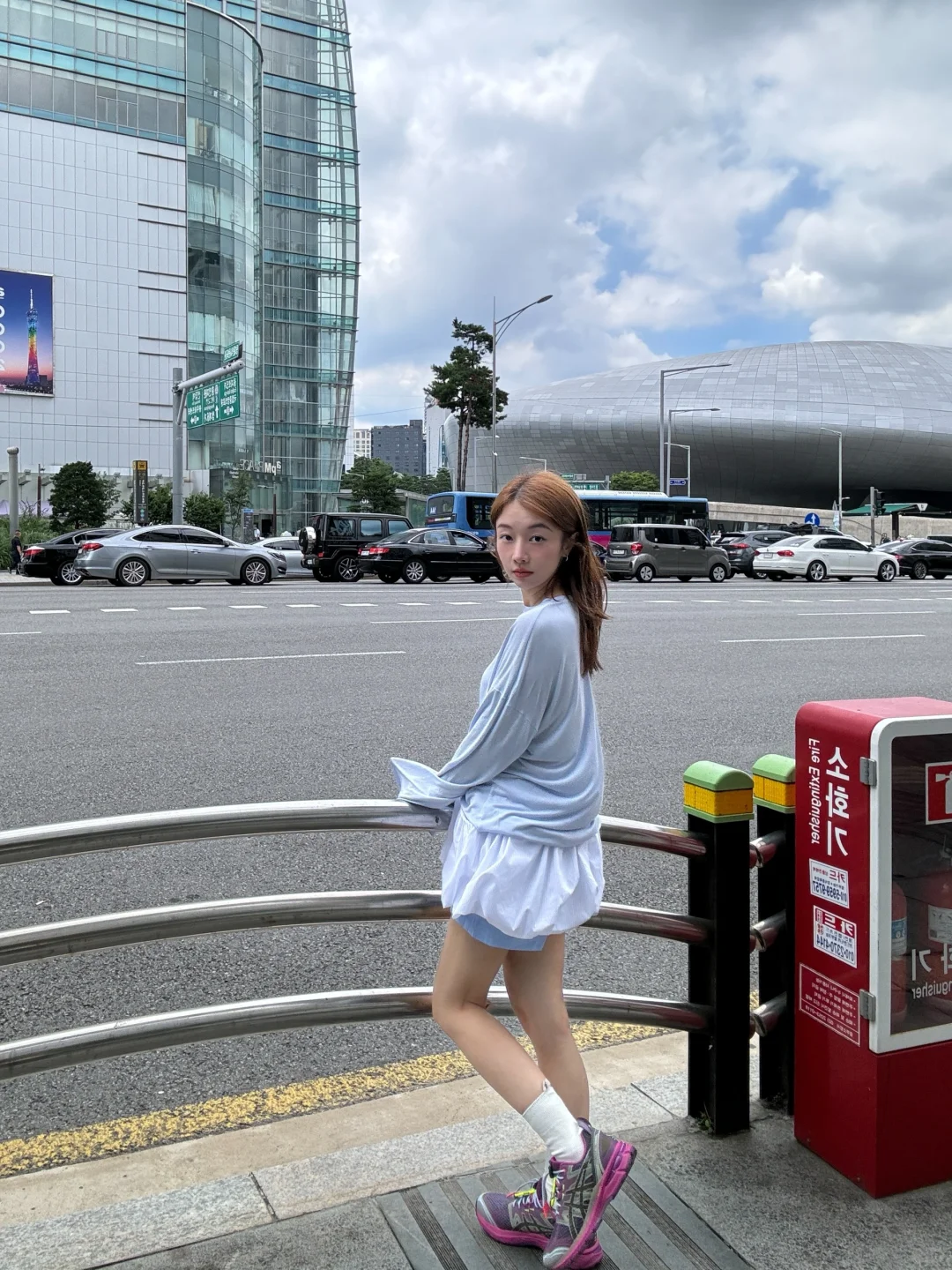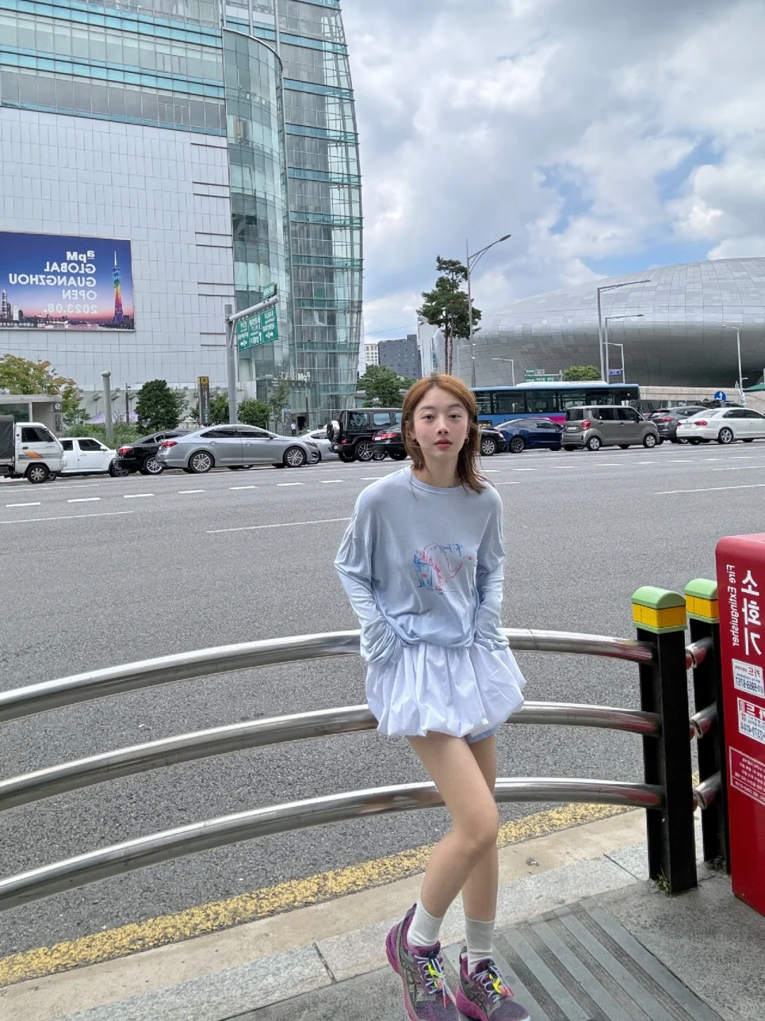 这腿不是长,是腿精本精,浅蓝配半裙,简单也能出圈!