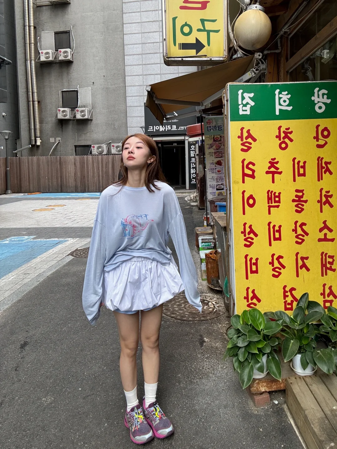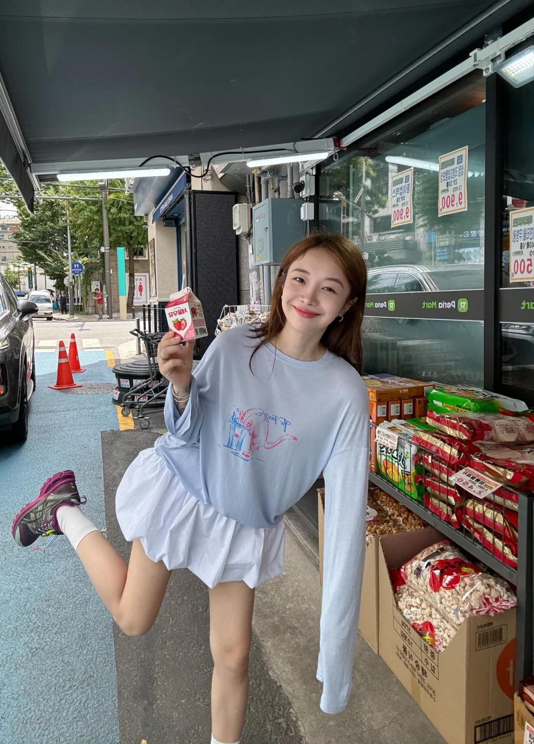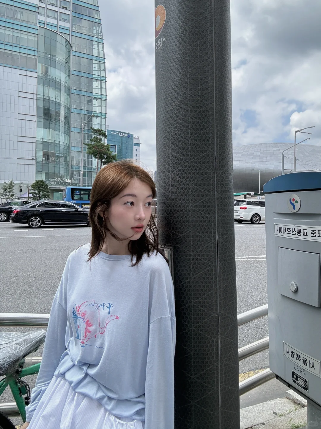 这腿不是长,是腿精本精,浅蓝配半裙,简单也能出圈!