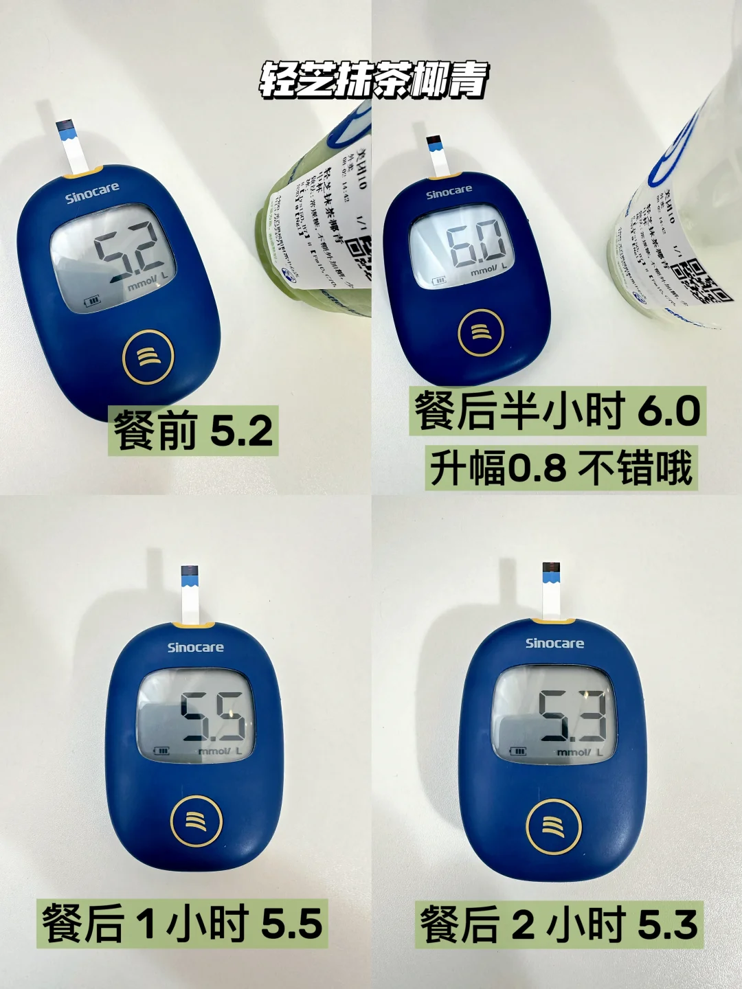 茶百道轻芝抹茶椰青升糖测试来咯[鼓掌R][鼓掌R]