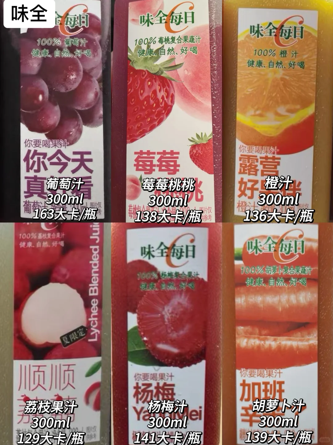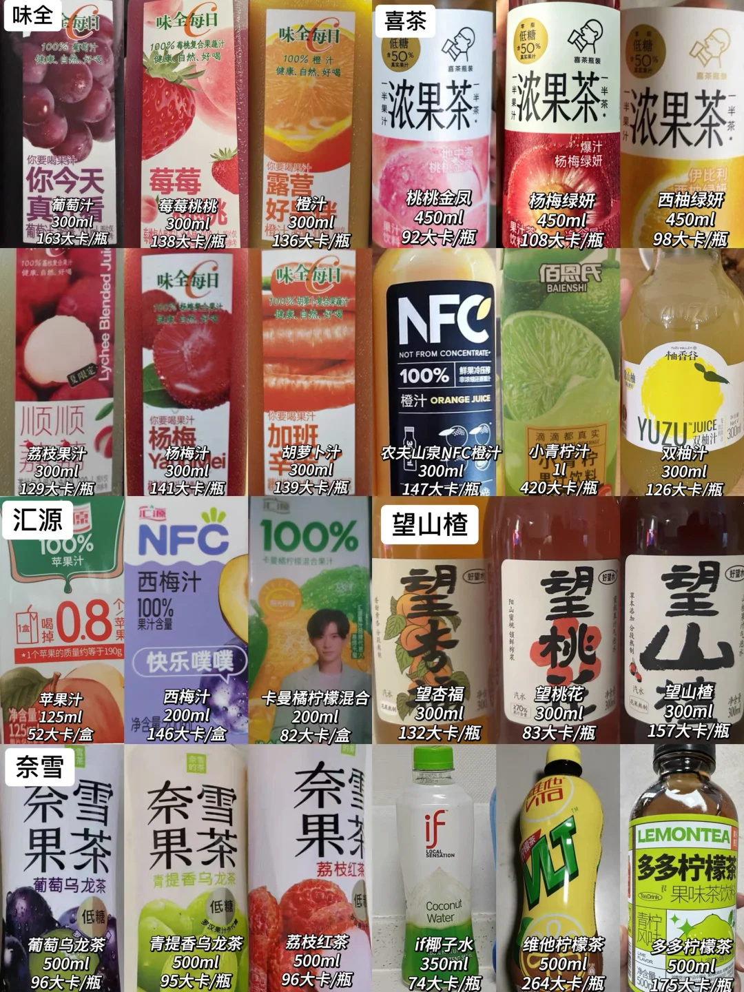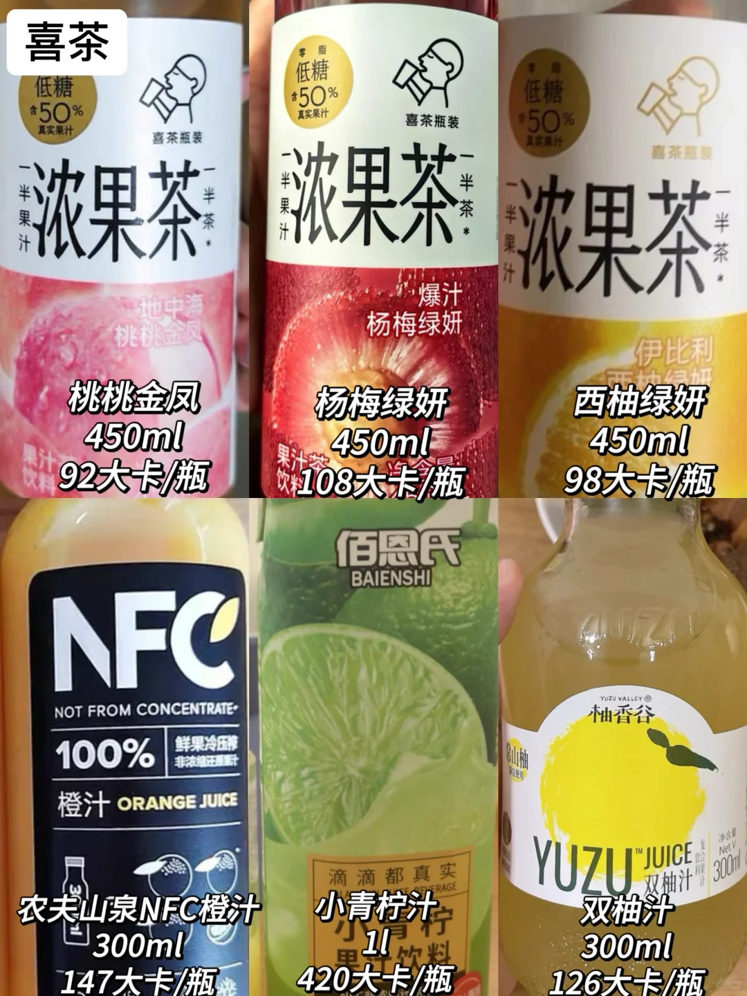 ✅夏天当然少不了果汁啦!测了一下才发现现在市面上已经有很多100大卡以下的低糖果汁啦,喜欢喝果汁的姐妹可以优先看下糖分含量酌情选择哦~(姐妹们可以尽量选择150大卡以下滴!)