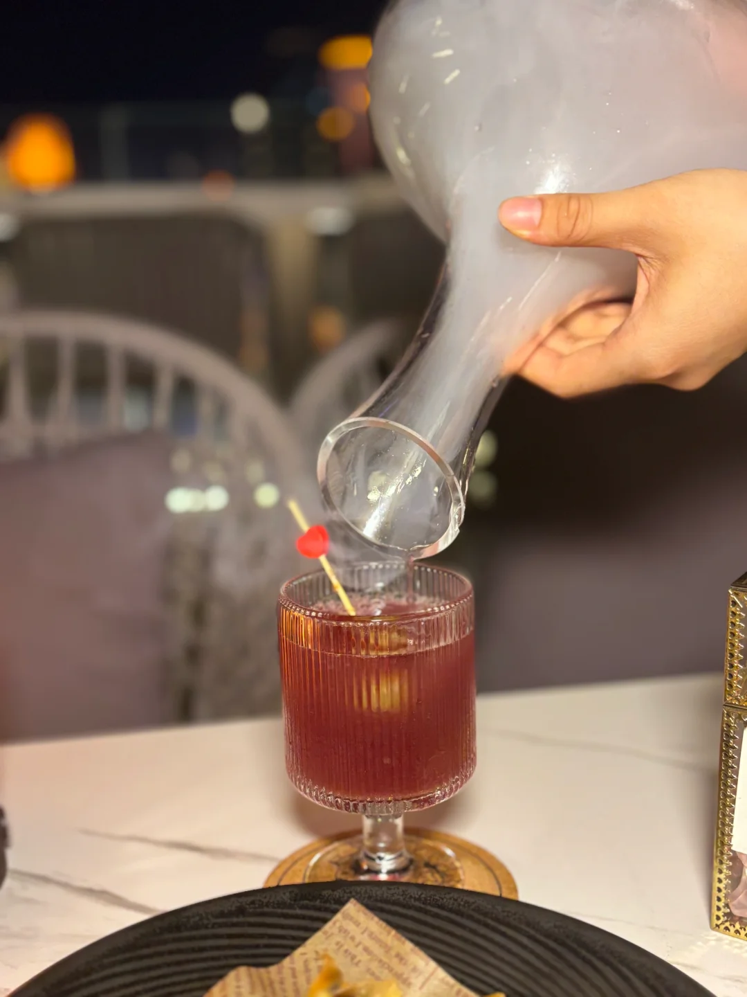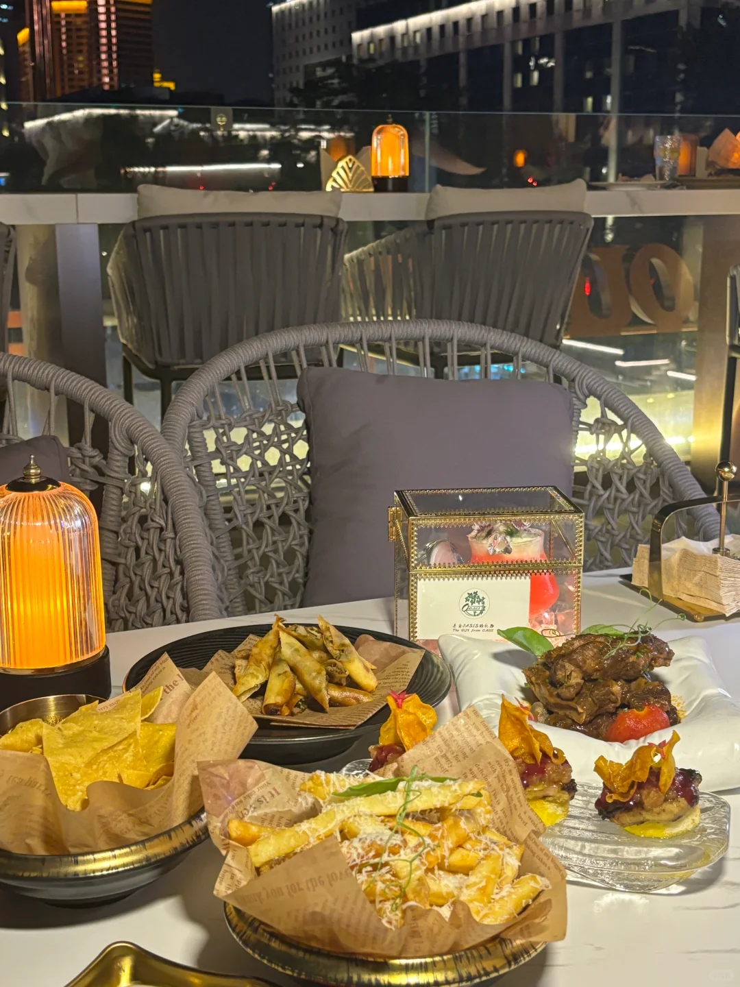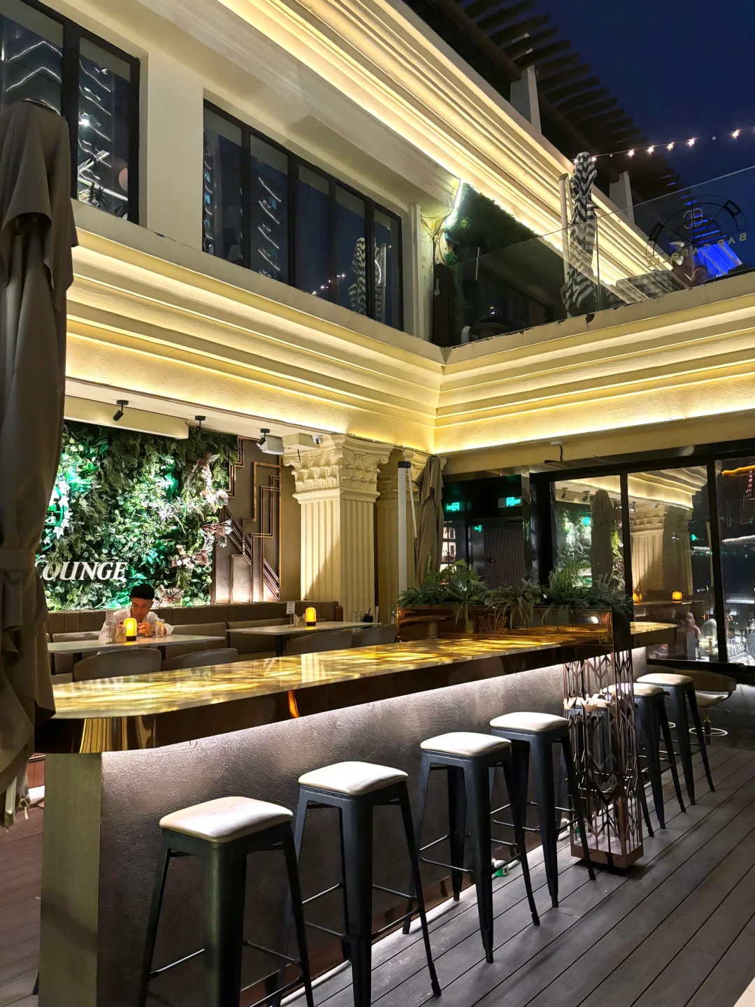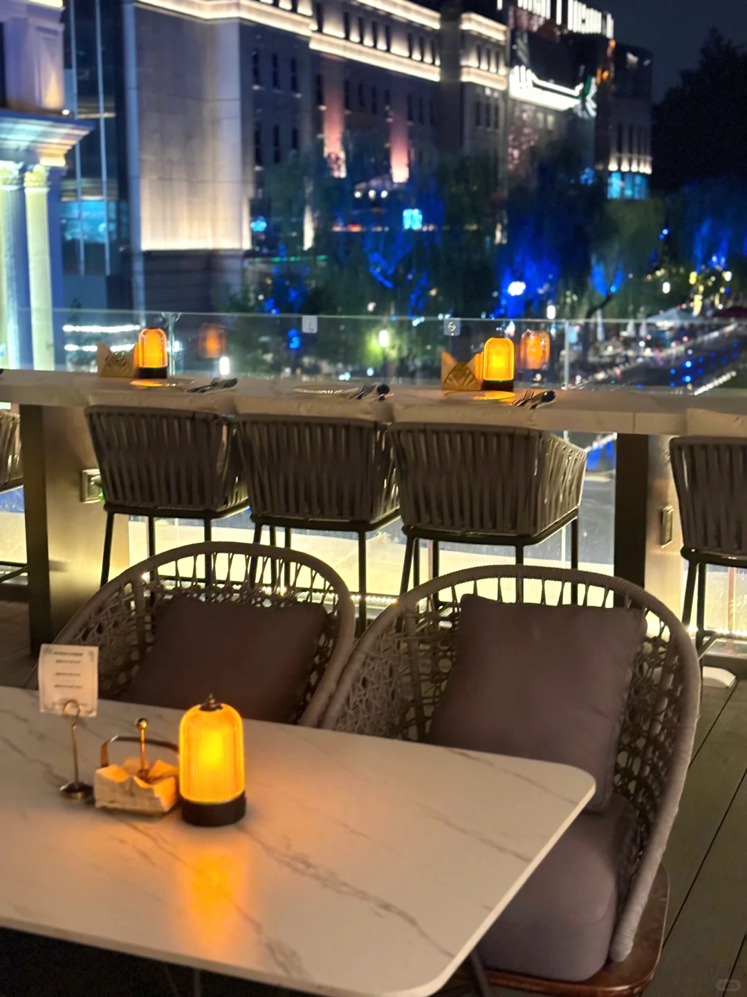店内黑金装修风格高级奢华,露台更是必须打卡。夏天吹着晚风🍃欣赏夜景再好不过。尤其是运气好还能赶上灯光秀演出哦