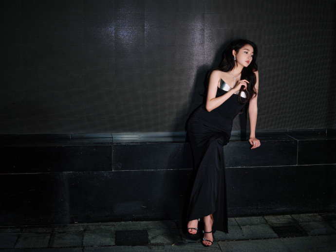 #关晓彤金属黑裙#关晓彤百花奖内场金属感开叉小黑裙+小烟熏造型又飒又美!酷酷的风