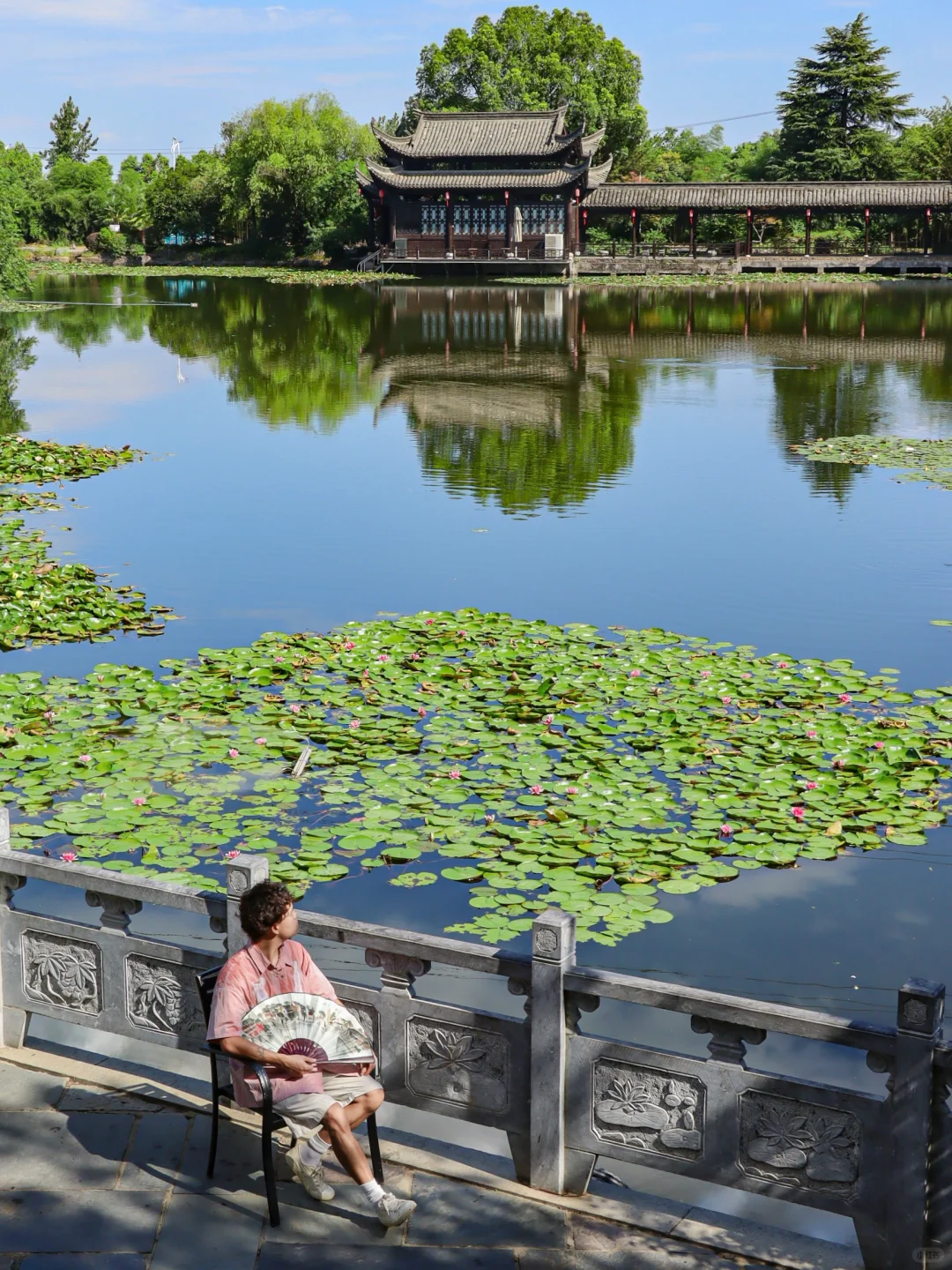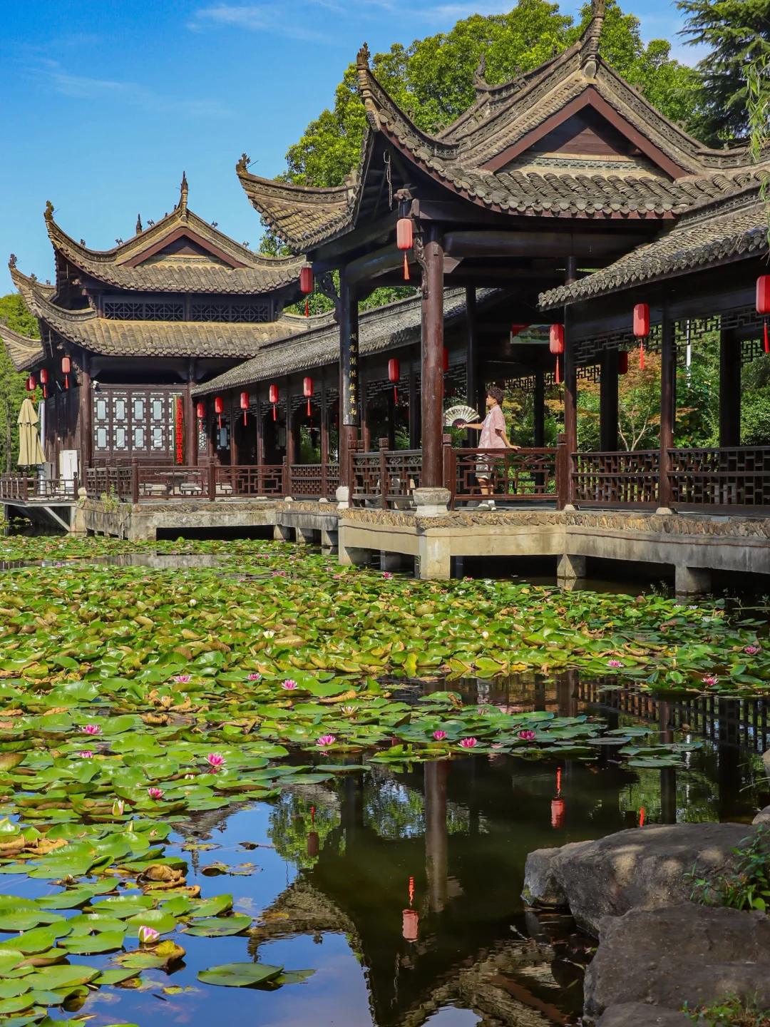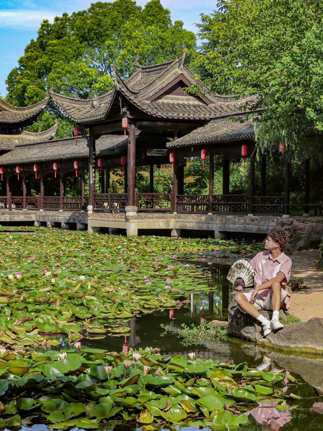 树木参天、满池睡莲、江南建筑