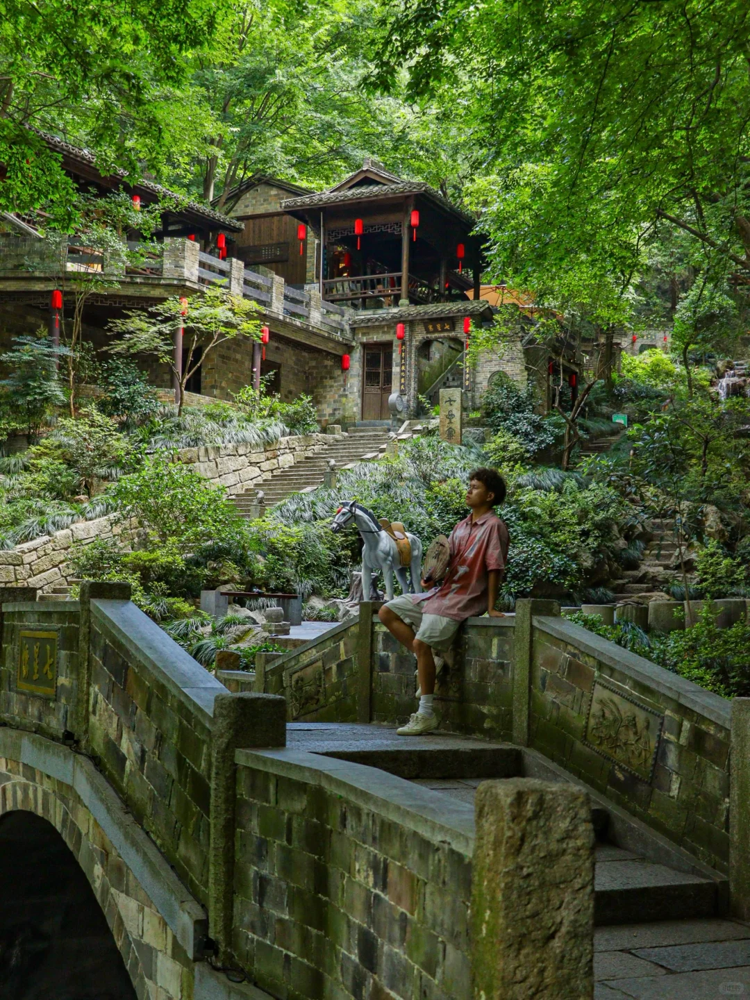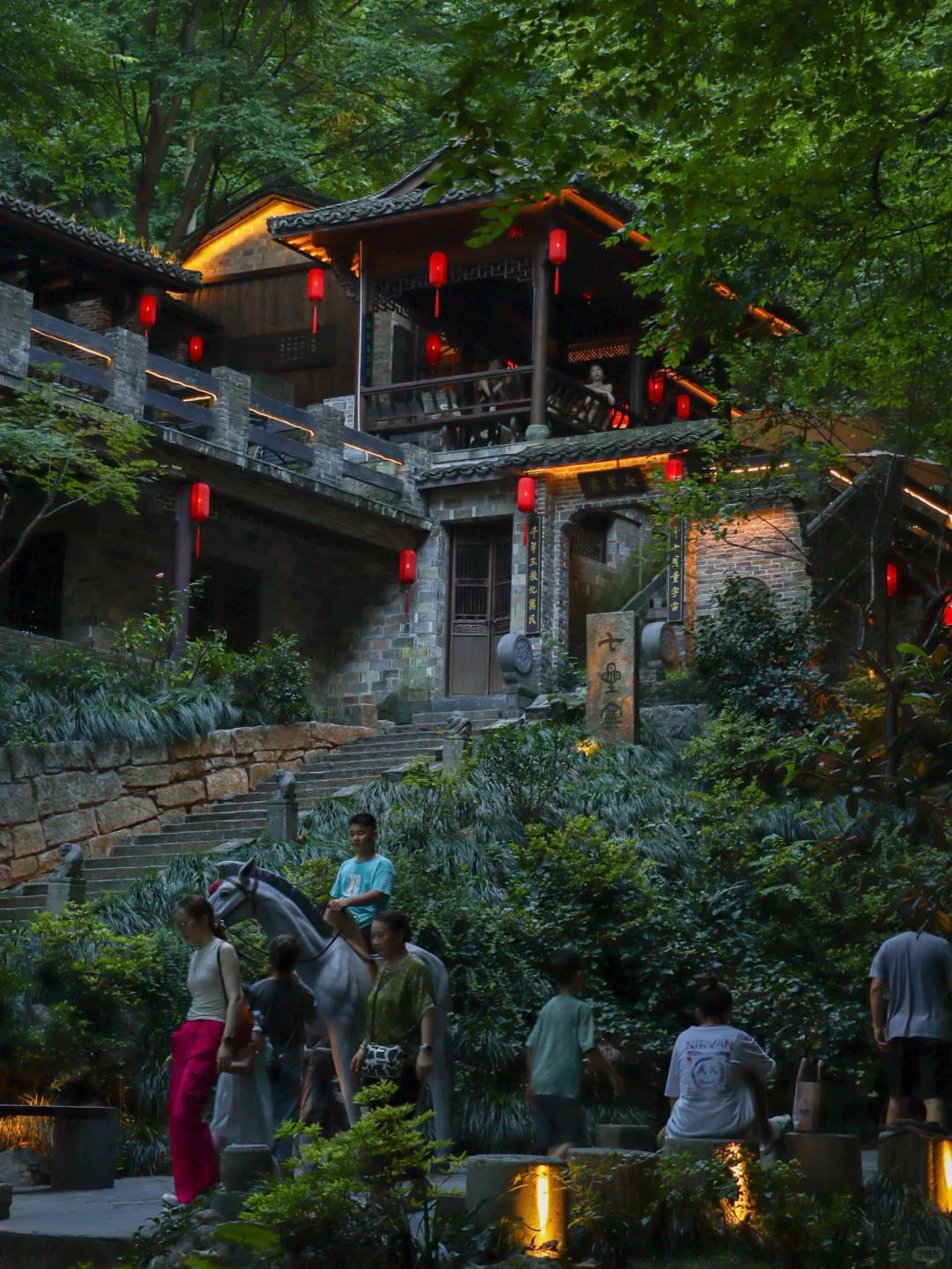 🔹忆江南12景:位于山上,有王安石讲学的荆公学堂、叶真人的悟道洞、古民居的七星寨等江南12景。建议分别晚上(6点30分灯光亮起后),以及早上去。既能感受梦幻夜景也能避开高温。山上还可以体验超好玩的云梯和滑道
