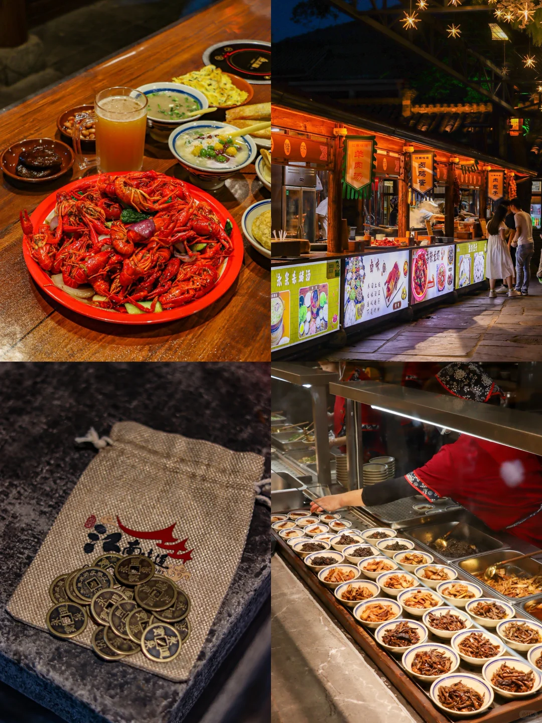 🔹江南味道:在钱庄兑换铜板后就能在江南味道逛吃啦~超多传统江南小吃的美食街,小吃都是纯手工制作,好吃且价格良心。当然小龙虾和啤酒撸串更适合夏天!