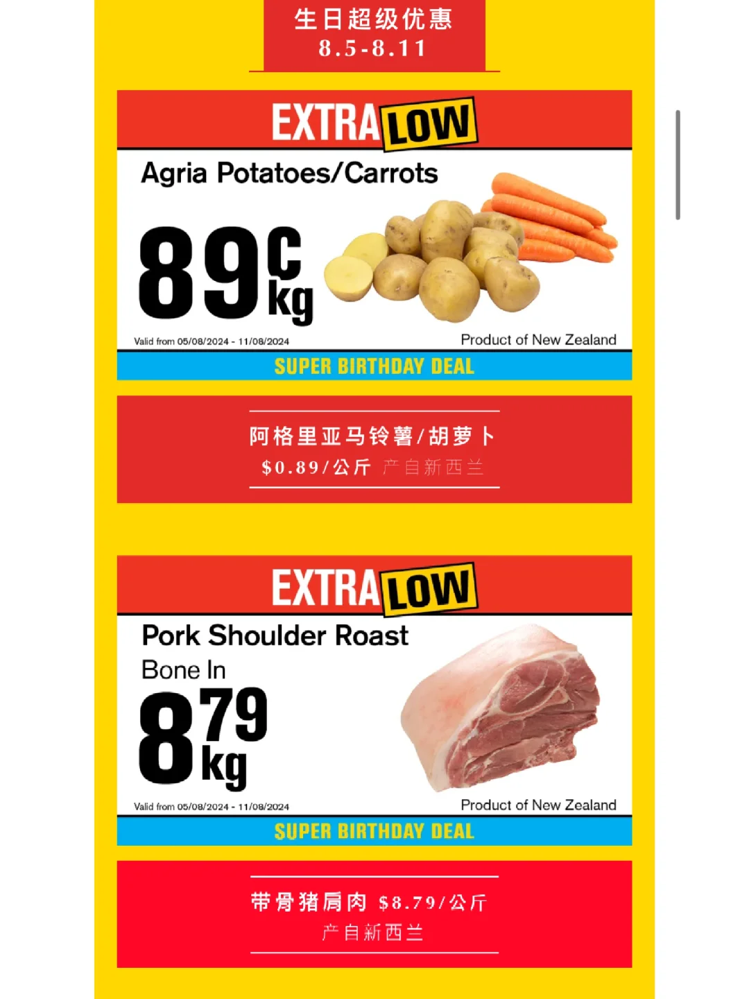 🇳🇿你做大黄超市生日优惠活动来袭 到8.11