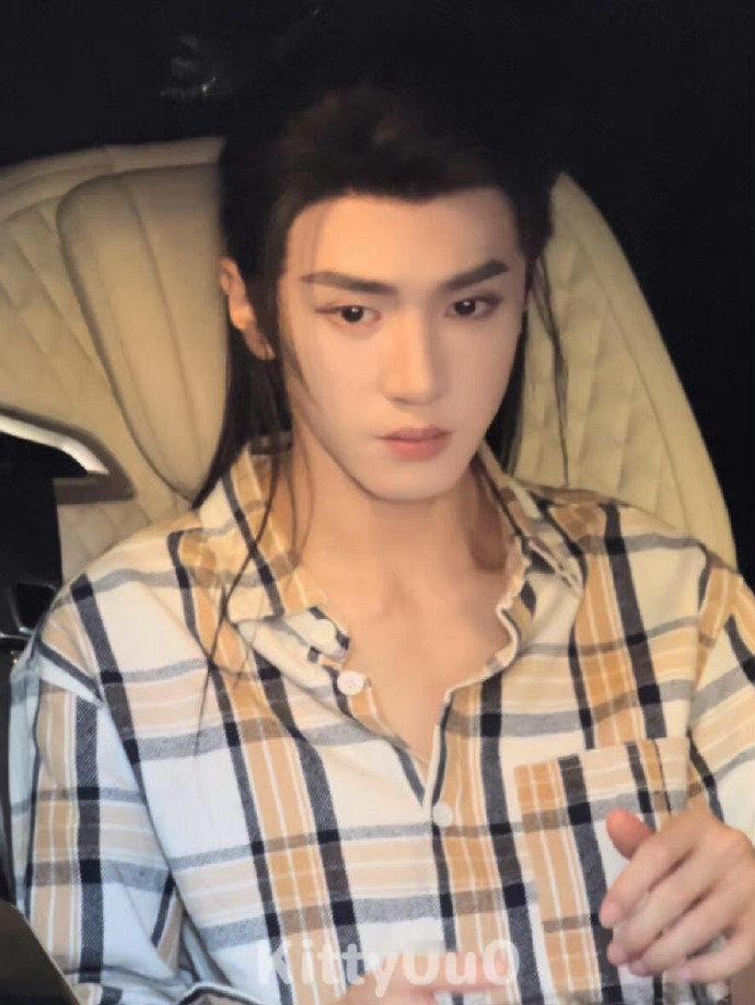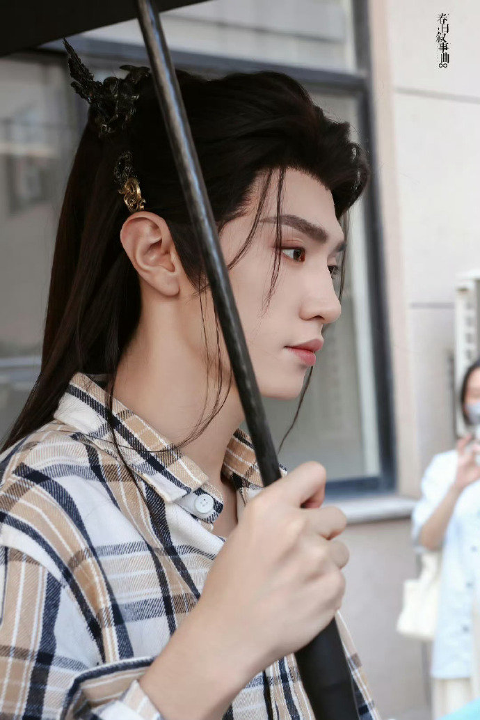 陈哲远《一笑随歌》出妆格子衫+黑色发簪+金色头饰,好贵气的凤随歌[舔屏]