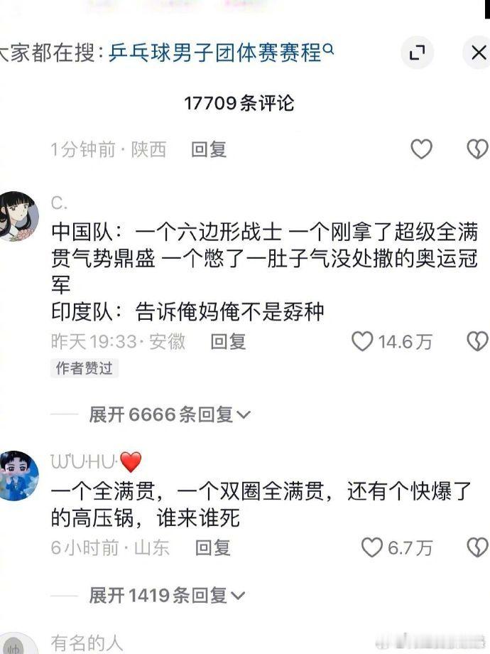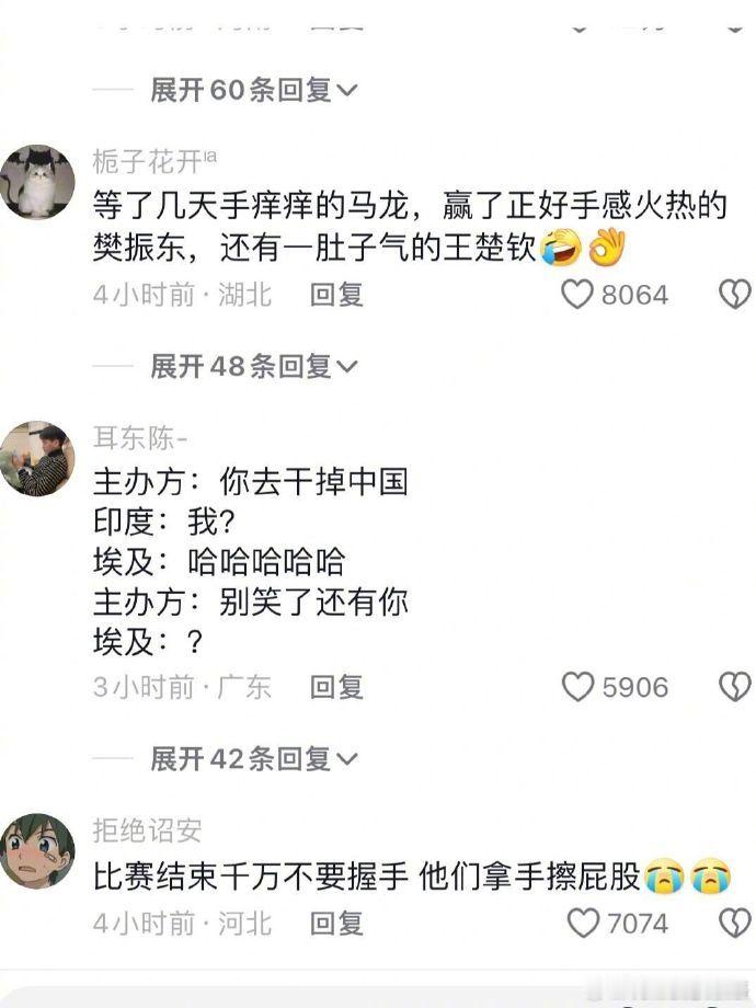 #韩国乒乓球教练称每次遇中国队都输#快要笑S在国乒的评论区了哈哈哈