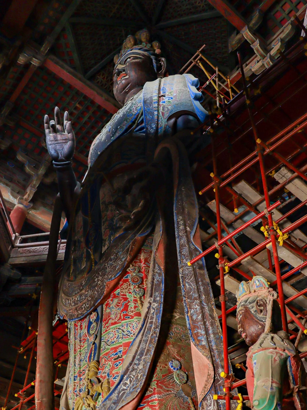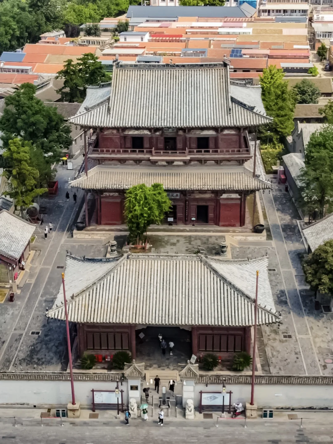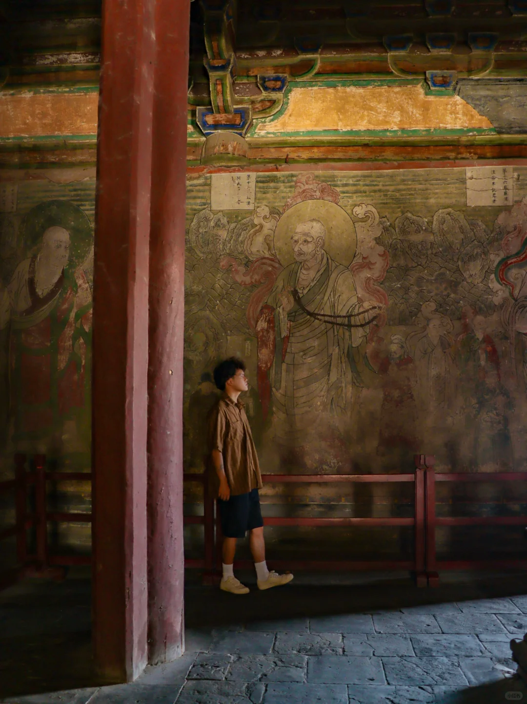 看点❷:辽代观音阁是现存最古老的木构塔楼,三面墙壁上绘满了元代壁画。