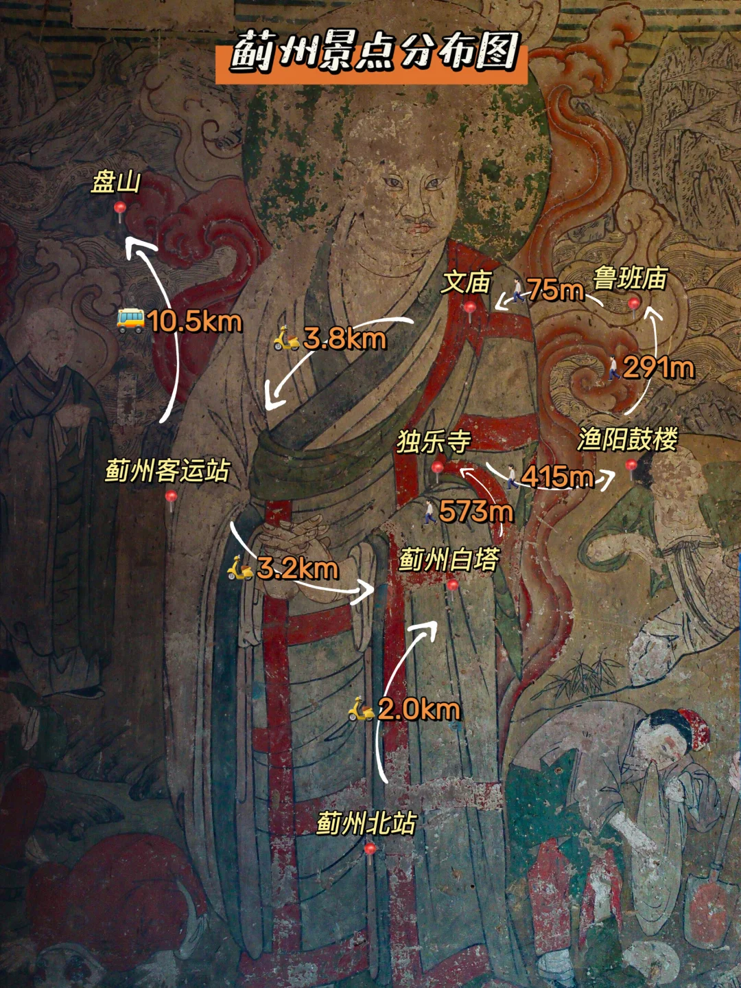🚶🏻古城一日漫游路线:抵达蓟县客运站后租一辆共享电单车—白塔寺—独乐寺—渔阳鼓楼—鲁班庙—蓟州文庙