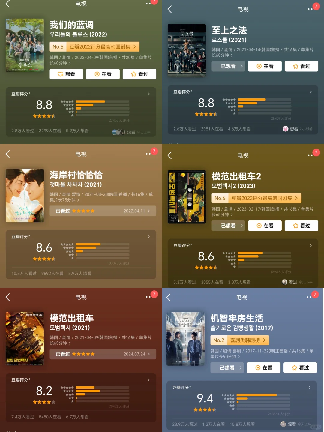 不开心的时候就去看群像剧吧; 开心的时候也去看群像剧吧! 因为它总能反映社会的酸甜苦辣,总能鼓舞你,总能在你意想不到的时候给你惊喜[星R][彩虹R][彩虹R] . 📺《模范出租车》1+2 《至上之法》 《我们的蓝调》 《海岸村洽洽洽》 《机智的监狱生活》