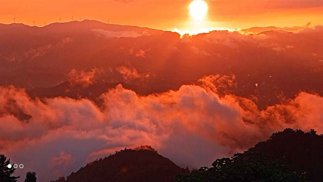 带娃出外游玩7天,从长沙到岳阳,再从岳阳到武汉,由于武汉太热,就开启了特种兵式游玩,半天的时间就打卡了黄鹤楼、武汉大学、东湖、顺便还体验了萝卜快玩,晚上再来到长江大桥看夜景,然后在江汉路步行街吃完美食,就打道回府回酒店了。 第二天一早就逃离了武汉这座热情似火的城市,坐火车来到了信阳,一到信阳就坐了大巴去鸡公山,路程1个小时,人好少。超过1.4米的小孩坐车是全票(而在长沙对小孩非常友好,坐地铁一律免车票)。 不得不说,一到鸡公山确实好凉快,不愧为四大避暑之一的美誉。运气真好,下过大雨之后,傍晚6点多就在宾馆的阳台上看到了一场盛大、壮阔的日出云海,被它的大气磅礴、五彩缤纷、仙气缭绕震叹到了,感受到了中国大好河山的美好! 可谓是:天边晚霞入画卷,云海腾跃胜五岳。溪水潺潺通仙舟,群山苍茫落日圆。 我一个人拿着板凳,坐在阳台上,一边喝着茶,一边欣赏着日落云海的美景。看着圆圆的夕阳一点一点露出来,和天上的淮河一起看浪花翻滚。又看着它一步一步走进云彩里,和群山告别。我想挽留它,对它恋恋不舍。可惜美好的东西都是那么短暂,夕阳无限好,只是近黄昏。 不过,我应该知足了。从起笔,到落笔,足足让我看了二十来分钟,运气算得上爆棚的! #寻找热爱表达的你#