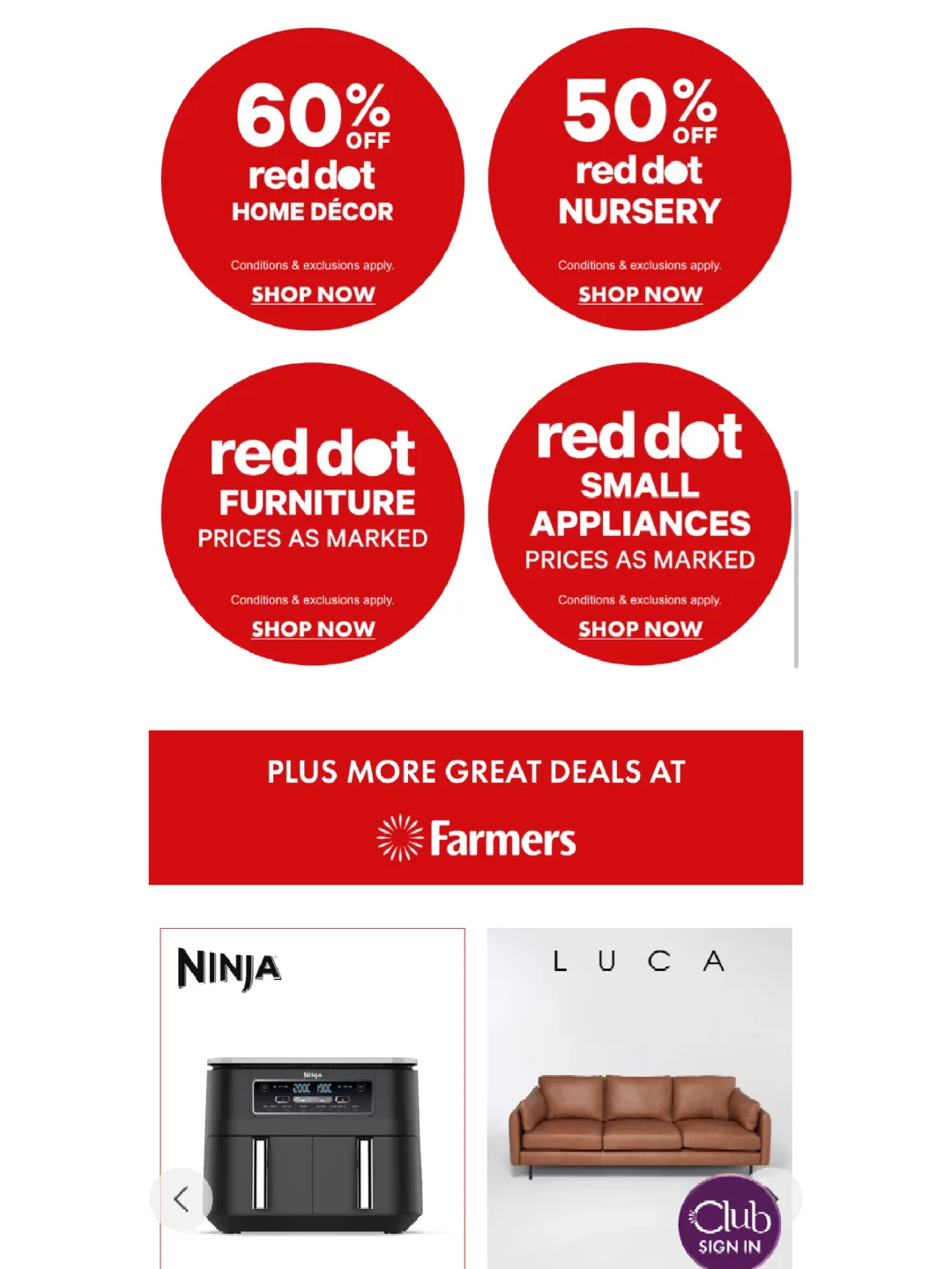 Farmers红点大促来袭!!超多优惠商品打折!五折起!还有买一第二件半价!玩具,衣服,家私,家电,厨具等等!折扣都非常好[哇R][鼓掌R]赶紧去便宜捡漏[得意R] 关注我,下一篇更精彩