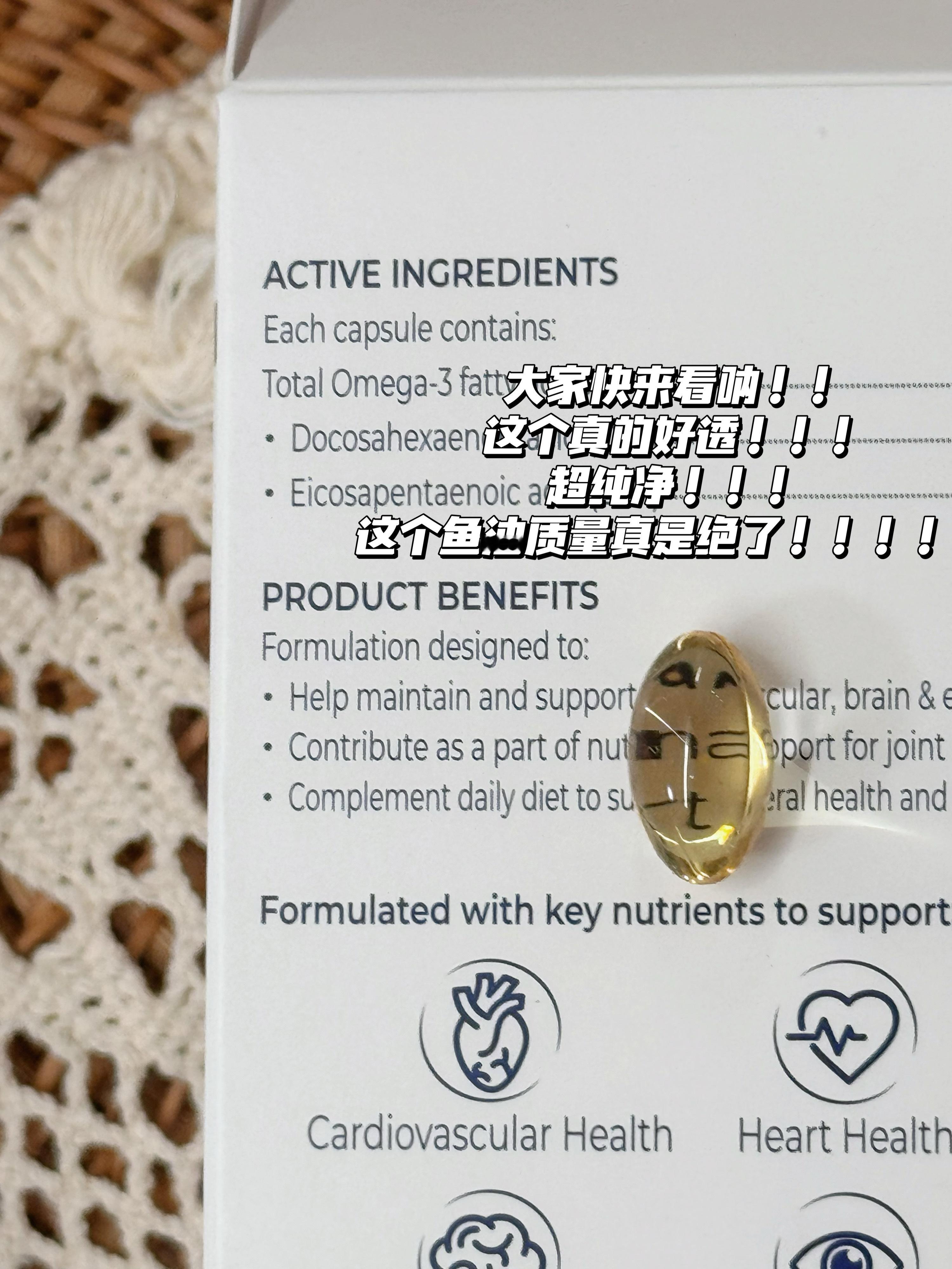 我先说它这个鱼油,在我接触过的鱼油里,可以说是top级别了!95%的纯度直接拉满(大家应该都被科普过鱼油这个东西就是纯度越高越有用的!纯度太低的话就会吃进去一堆废油!)