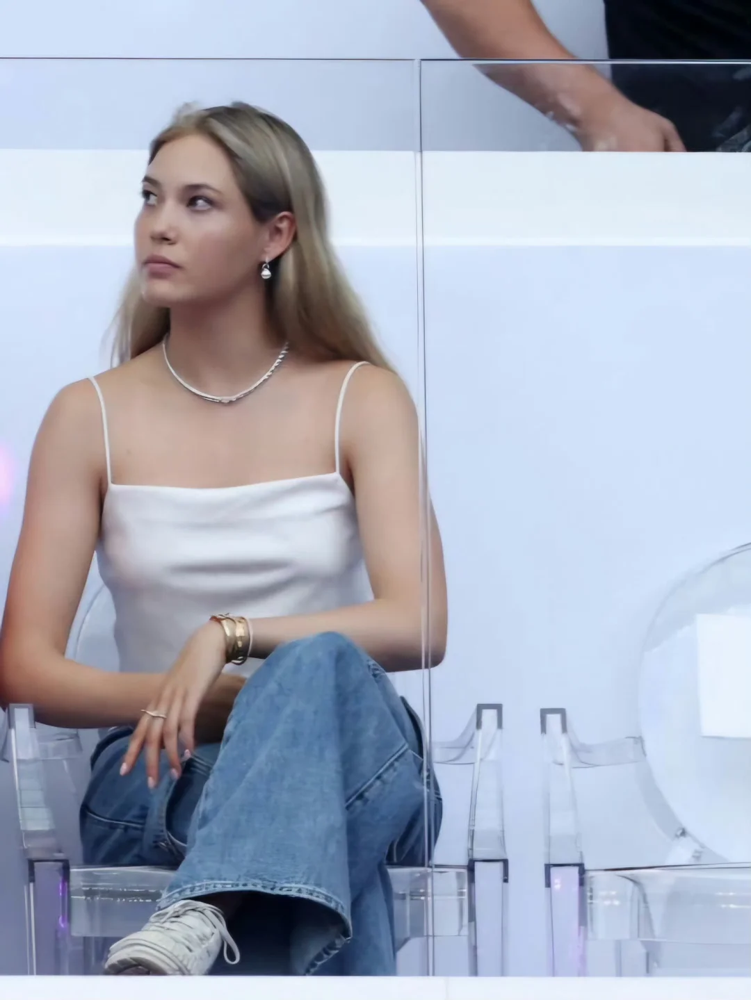 ✨谷爱凌和狗爷一同观赛,吊带搭配上破洞牛仔裤,清爽亮眼 图:狗爷