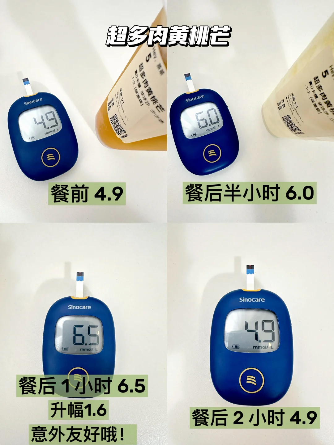 🍬餐后一小时6.5→升幅1.6,在果茶里相当友好哦!