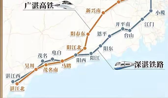 茂名于 2025 年 12 月迈入双高铁时代。其一为 2018 年通车的深湛高铁江门至湛江东段,其二是广湛高铁。