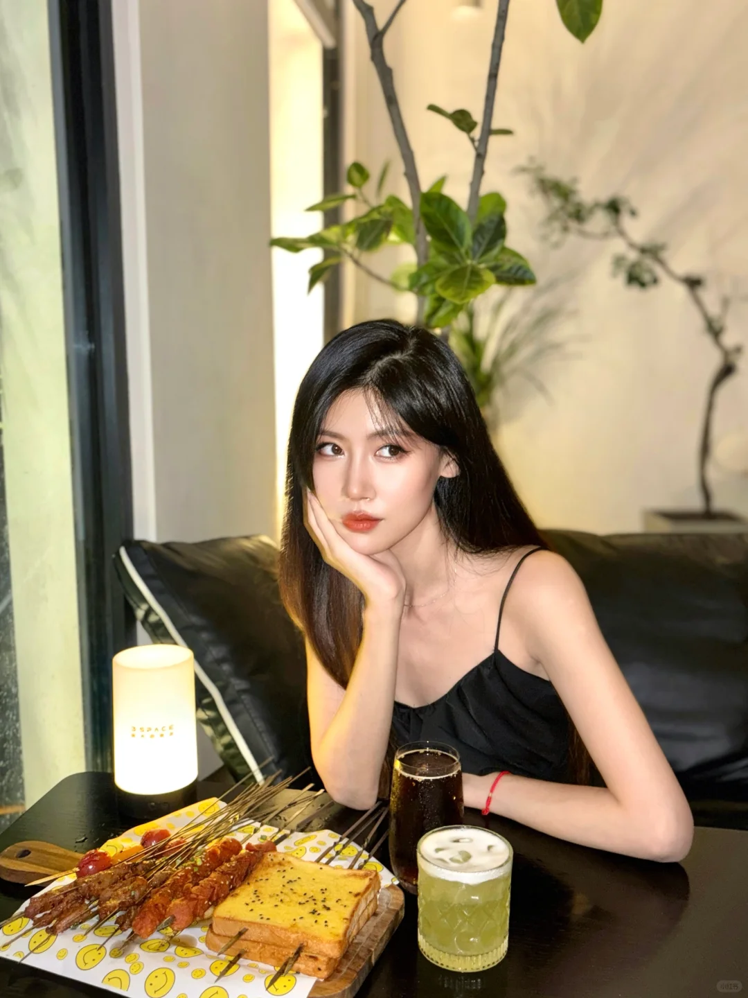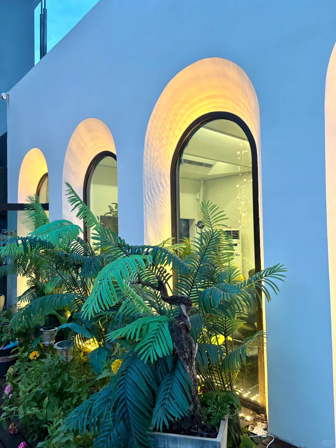 店内露天的院子很宽敞和外面吵闹的车水马龙成强烈反差,这边却静谧放松❤️。院落设计更是小阿那亚风格,打工人坠好去处~到了🌆晚上更美,伴着夜灯院子里会有表演和驻唱~