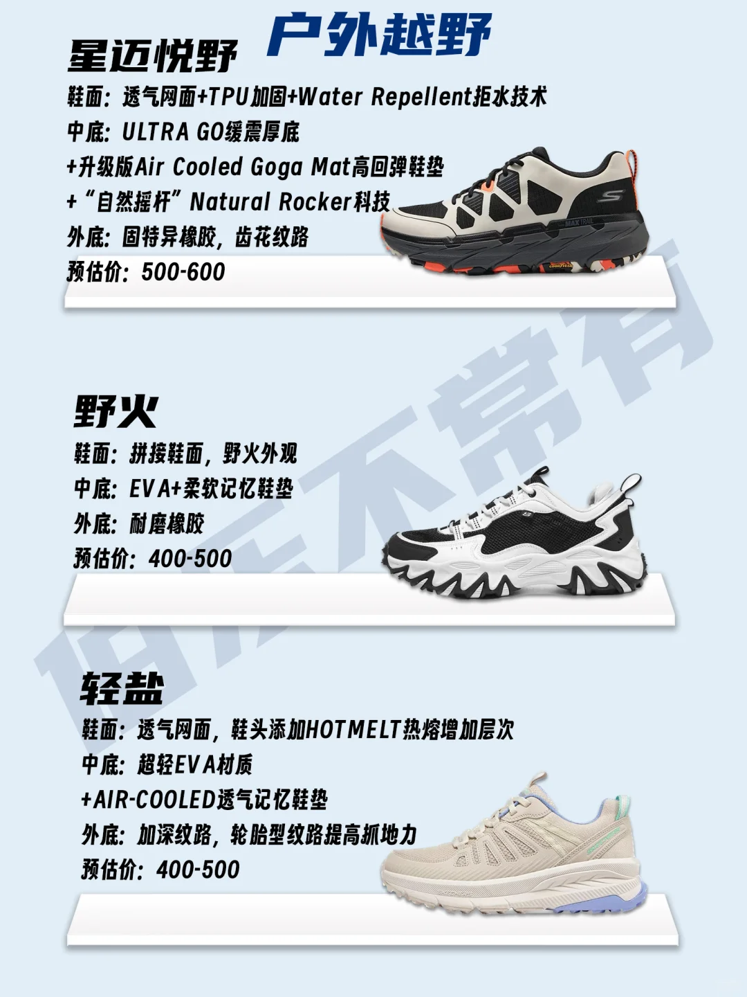 盘点2024年斯凯奇跑鞋矩阵发现,今年他家竞速、竞训的跑鞋少了,而针对大众跑者的缓震跑鞋、久站、户外越野跑鞋明显更多。