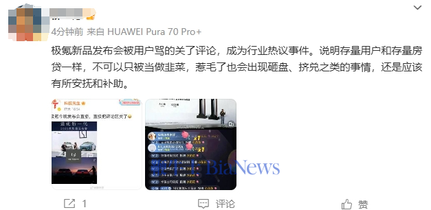 极氪关闭评论区实施“全体禁言”一事也引起网友热议。
