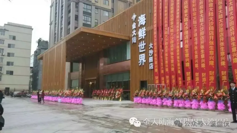 几位住在西乡塘的亲戚,即便是哪天不想自己做饭,也会选择去金大陆搓一顿。甚至连在西乡塘高校毕业的新南宁人,都有不少在金大陆摆酒结婚。按金大陆对外的宣传,他们是广西首家推出一站式婚礼婚庆服务的平台,拥有全国唯一的千万级豪车迎宾队伍,月均客流量超过100万人次。成立27年至今,金大陆在全广西现有11家分店,其中南宁有衡阳总店、邕江明珠店、北湖翡翠店、仙葫店等等共7家分店。像近日传出放假通知的大沙田店,已经开业了8年。2016年初开业当天,还把劳斯莱斯魅影、幻影、玛莎拉蒂、保时捷等豪华礼宾车拉来撑场面,非常热闹。