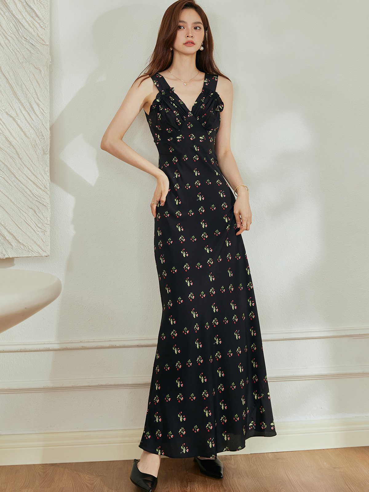 姐妹们,今天给大家推荐一款非常适合夏季的吊带连衣裙。这款裙子采用法式设计,修身长裙的版型,穿上去会非常显身材优美。而且这款裙子是碎花图案,配上非常自然的 V 领设计,整个人会显得更加灵动和优雅。面料手感非常柔软细腻,上身之后有种舒服的亲肤感,非常透气,适合炎热的夏季。而且它还有褶皱和拉链的设计,增加了精致感,整体看起来非常高级。心动的姐妹赶紧点击下方链接,一起穿出度假风的美丽吧。