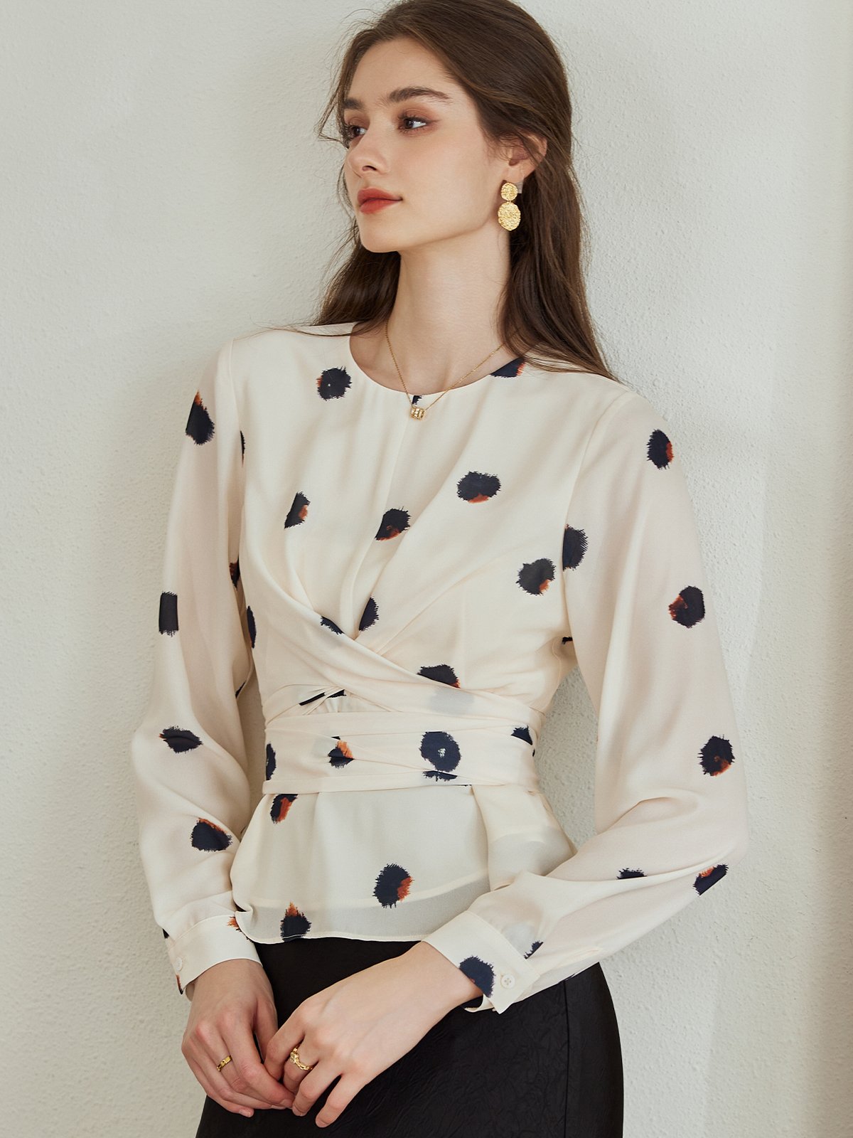 罗衣法式系带收腰衬衫,品牌Roey's house,为30-34周岁的女性量身打造。衬衫设计精巧,采用了100%聚酯纤维材质,确保了面料的舒适与耐用。细节方面,包括拉链、系带与纽扣的精妙搭配,使得穿着显瘦且修身。经典的圆领设计搭配波点图案,纯色背景下的波点设计更显优雅。修身版型的长袖设计,既适合通勤OL风格,又不失女性的温婉气质。