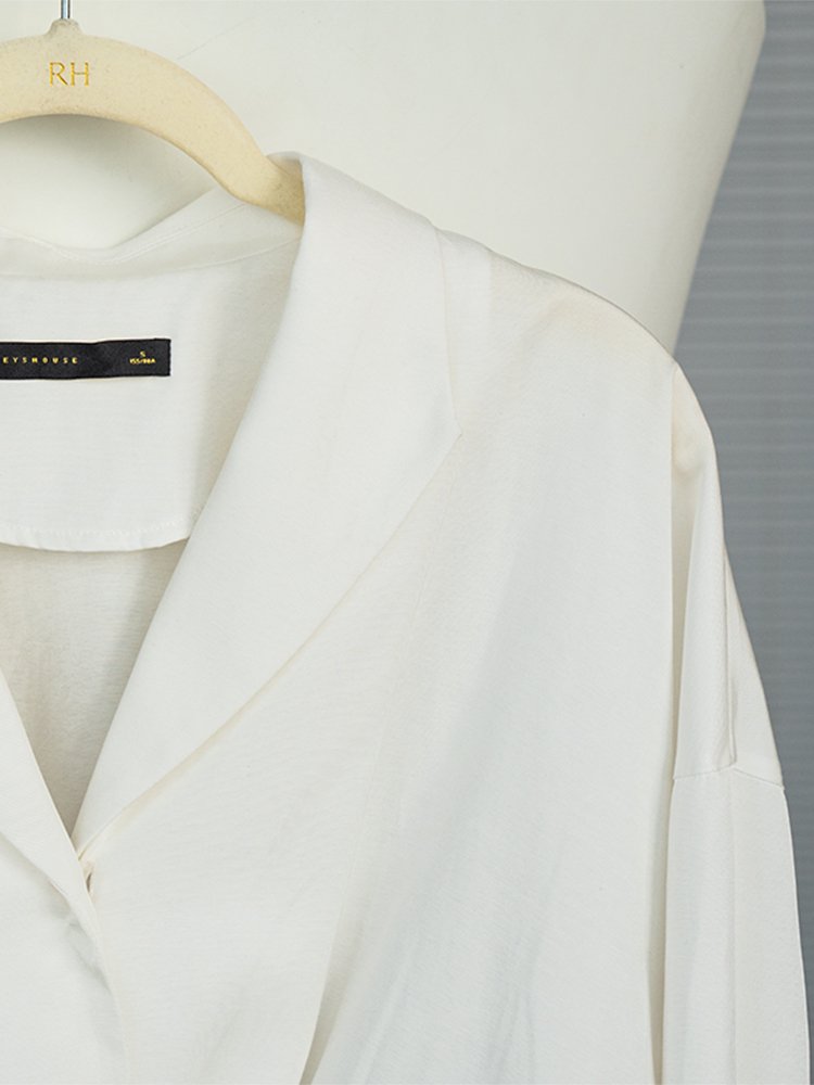 姐妹们,今天给大家推荐一款非常适合职业女性的衬衫,是这种非常别致的V领设计,上身之后呢,它会有一种非常舒适的感觉。而且它这个面料摸上去的手感非常好,就是那种非常柔软有质感的。而且这款衬衫还有一个非常大的特点,就是它的扭结设计,非常修身,显得整个人都非常有气质。穿上去之后呢,整个人显得非常干练。