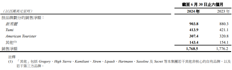 新秀丽2024年上半年业绩方面: