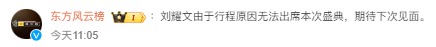 #刘耀文无法出席东方风云榜#刘耀文由于行程原因无法出席第31届东方风云榜音乐盛典