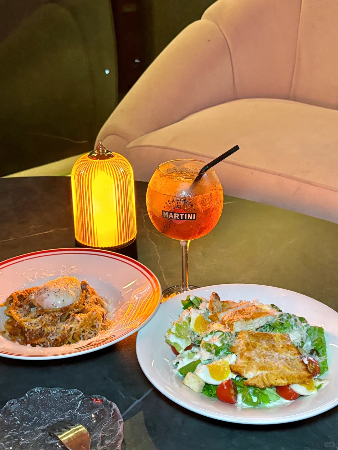 好久没来马天尼,陪朋友来观摩个欧洲杯, 他家心心念念的露台终于回归啦~ 清新摩洛哥风格,带点小复古~ 落地窗前可以欣赏屯里夜景,夜景灯光和店里的暖色调遥相呼应,超有氛围🌸🌸 室内更是大换新,各种霓虹灯氛围灯 突然觉得好浪漫🌹 酒水一如既往的好喝, 来杯鸡尾酒🍹做露台最舒服, 西餐也是好吃😋,沙拉里的肉肉给了好多呀~ 特别适合约三两好友过来,赶上欧洲杯🏆, 大屏幕看球⚽️,吃吃喝喝超带劲儿💕💕 🪩店名:MARTINI BAR JD78马天尼酒吧(机电院店) 📍工体北路4号院78号楼4层401