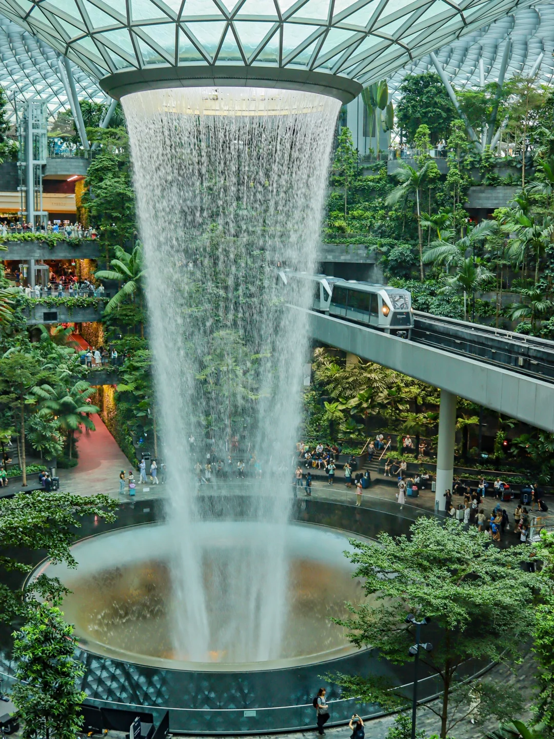 ✔️星耀樟宜:连续被多年评为全球最美机场,坐上小火车穿越室内瀑布、热带绿植,未来感十足