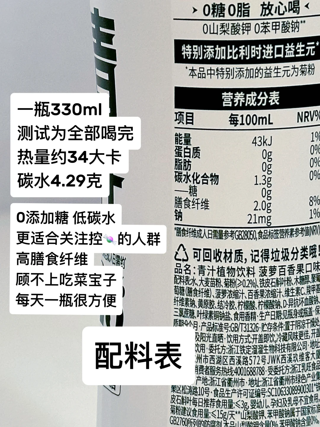 清爽原味没有甜味,但也不苦涩,适合喜欢完全无糖的宝,一瓶可以补充一天25%的膳食纤维量,日常不吃吃菜的宝子,可以冲一波植物超人青汁!