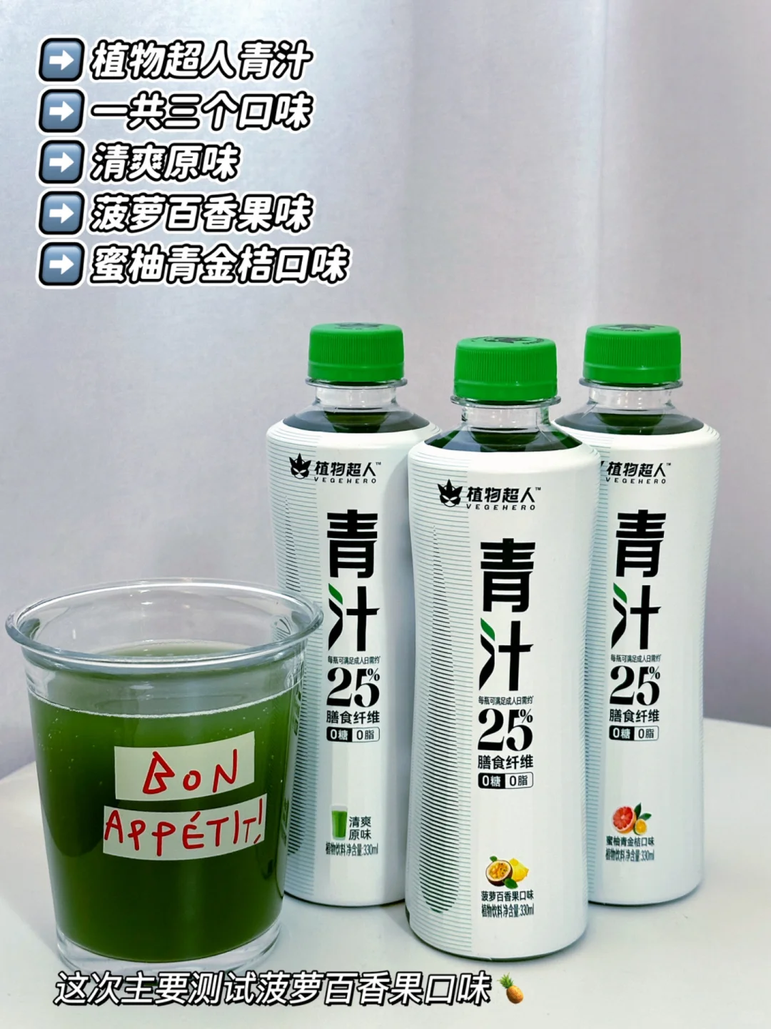 我个人更推荐→植物超人青汁,喝起来清爽无负担,超喜欢菠萝百香果口味🍍一口下去就像飞到了海边🏖️