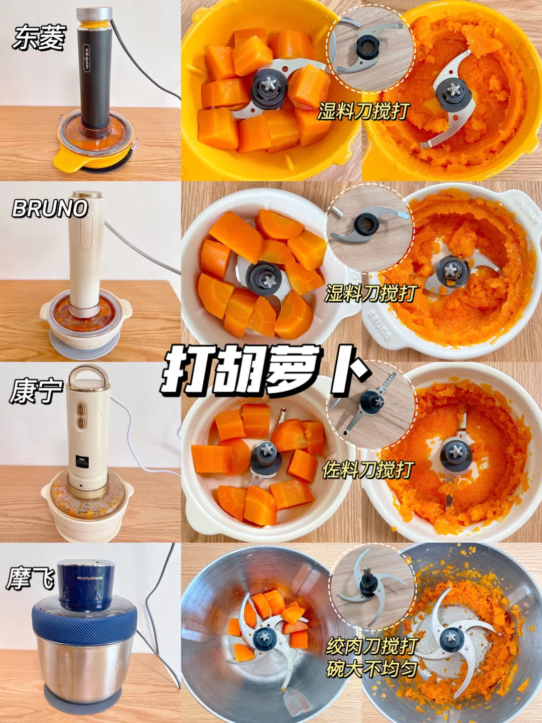 🌈我选了市面上热门的4款佐料机,不局限于辅食搅打,做到一步到位:东菱佐料机、BRUNO佐料机、康宁佐料机、摩飞佐料机,给大家做一期佐料机测评,细节看实测图,可作为选购参考哦。
