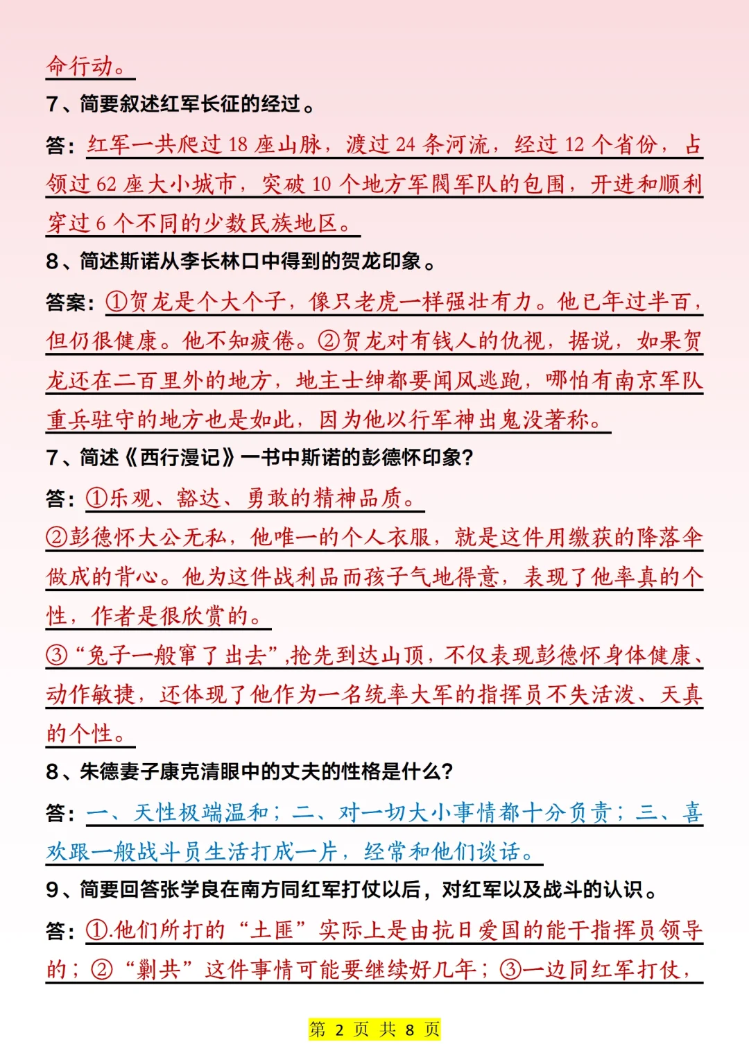 八上语文|《红星照耀中国》必考30道简答题‼️