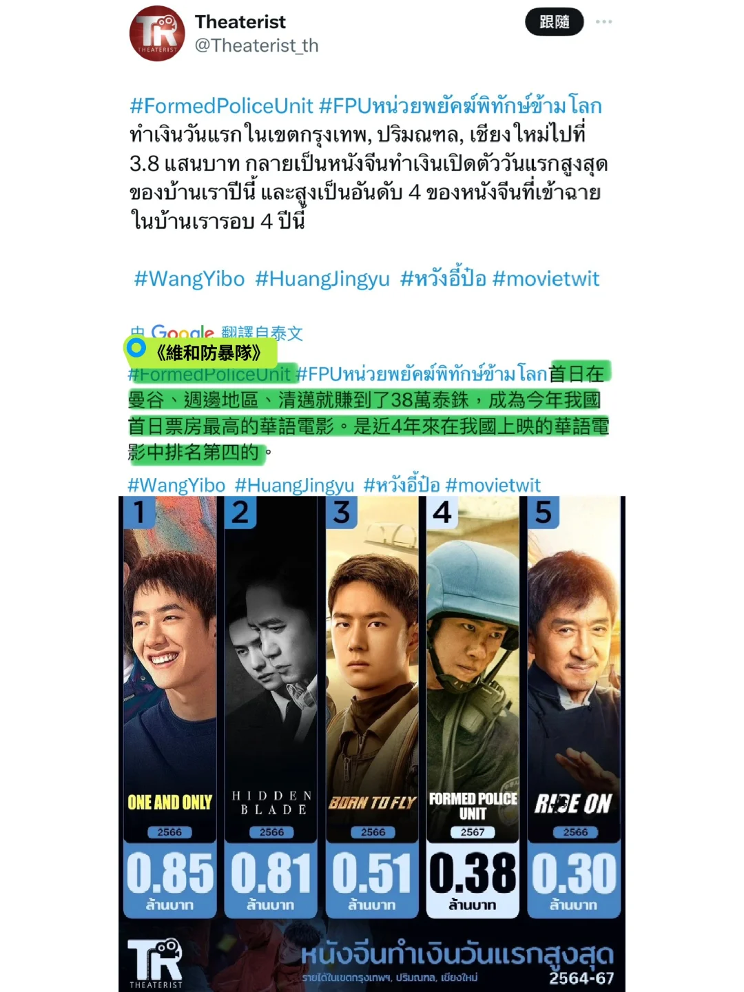 泰國票房網再發喜報!王一博包攬近4年華語電