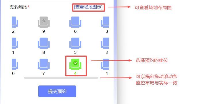 查看各时段的共享座位空闲情况,并进行选择,支持单选时段和多选时段