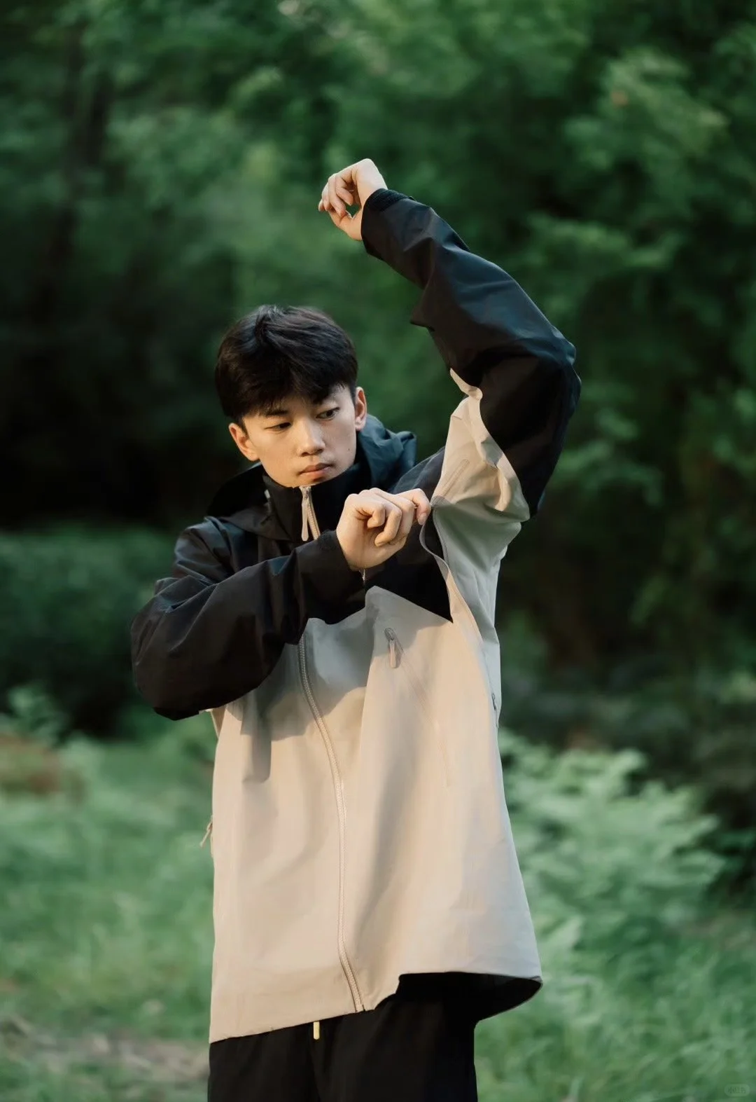 ✨在回国之后后,汪顺终于有去户外登山的机会,他身上清爽的气质和大自然很适配,整组大片充满了生命力,让人看着很舒服 ✨汪顺这组日常照的衣服也很加分,始祖鸟家经典的BETA AR硬壳冲锋衣版型,简洁又不失设计感的拼布设计,耐看又实穿 图:汪顺