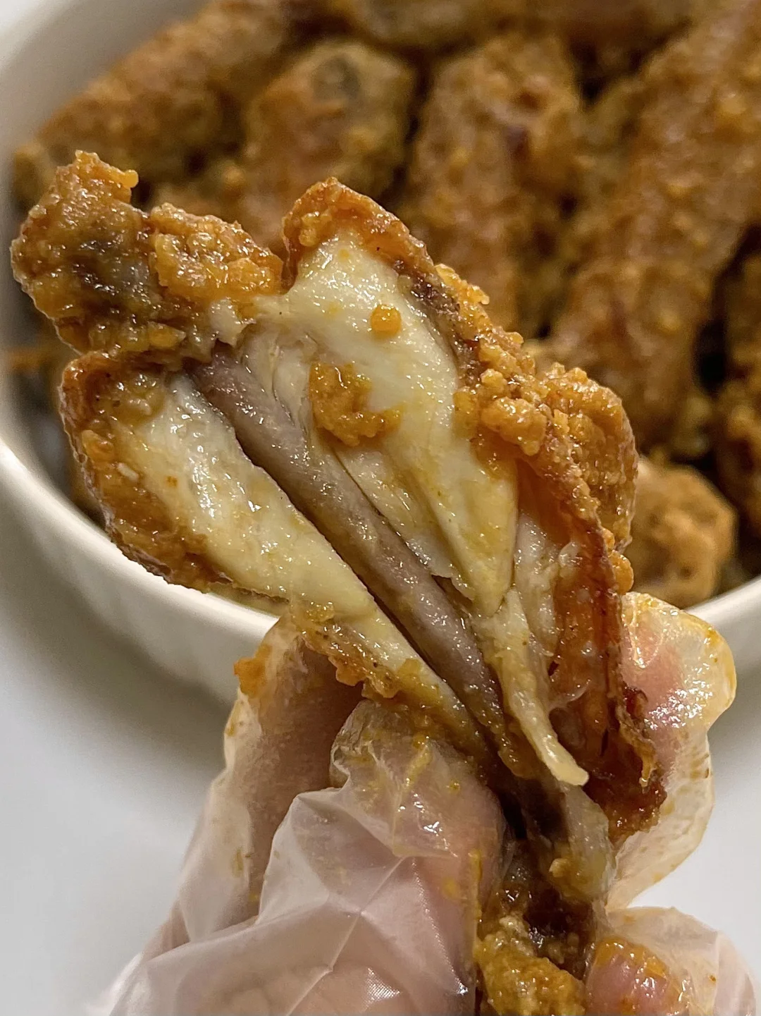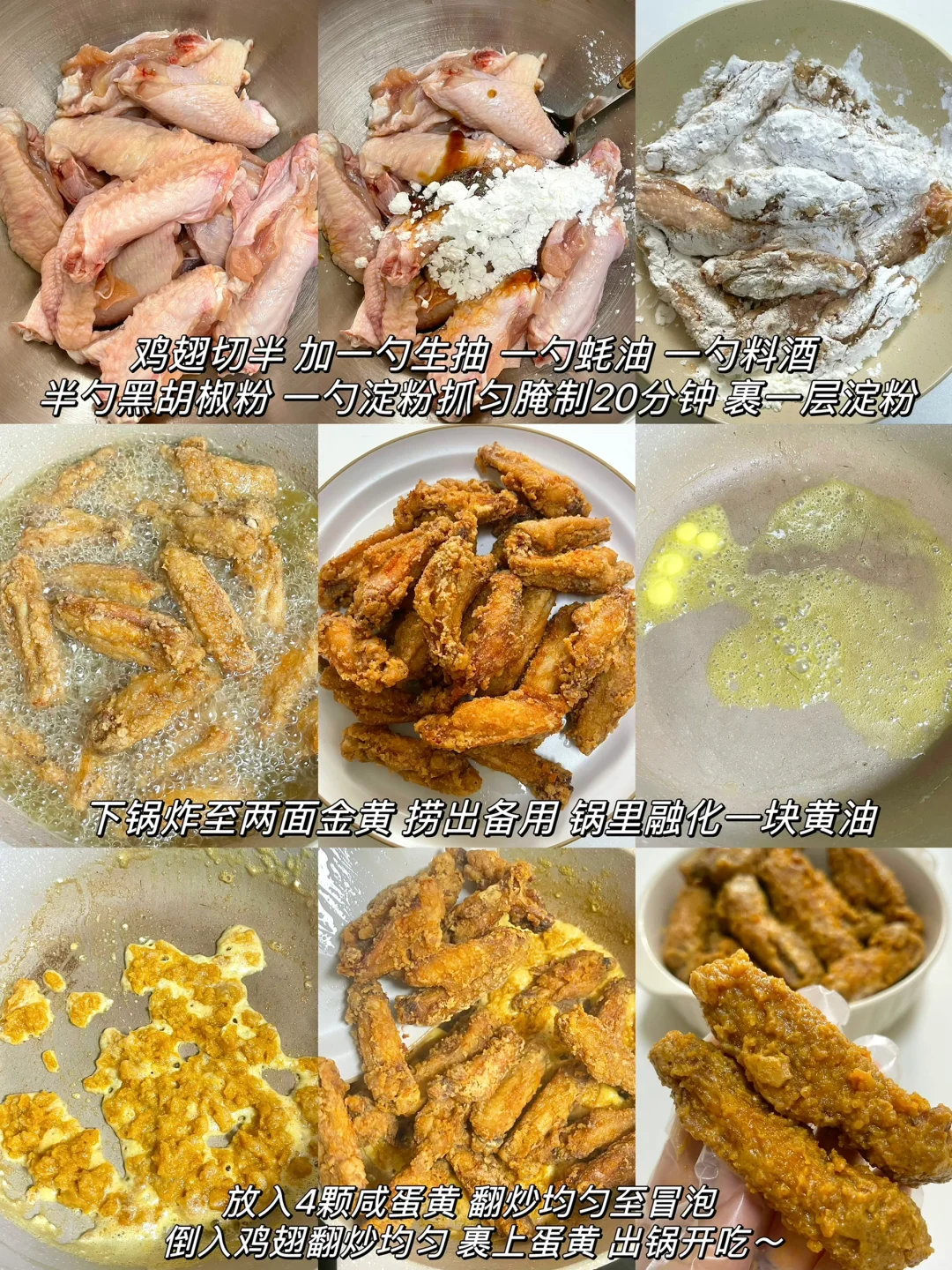好吃到舔手指的咸蛋黄鸡翅 真的好吃到停不下来😭 每根鸡翅都裹满了沙沙糯糯的咸蛋黄 咸香酥脆 外酥里嫩!! 求你们赶紧去做!步骤如图⬆️
