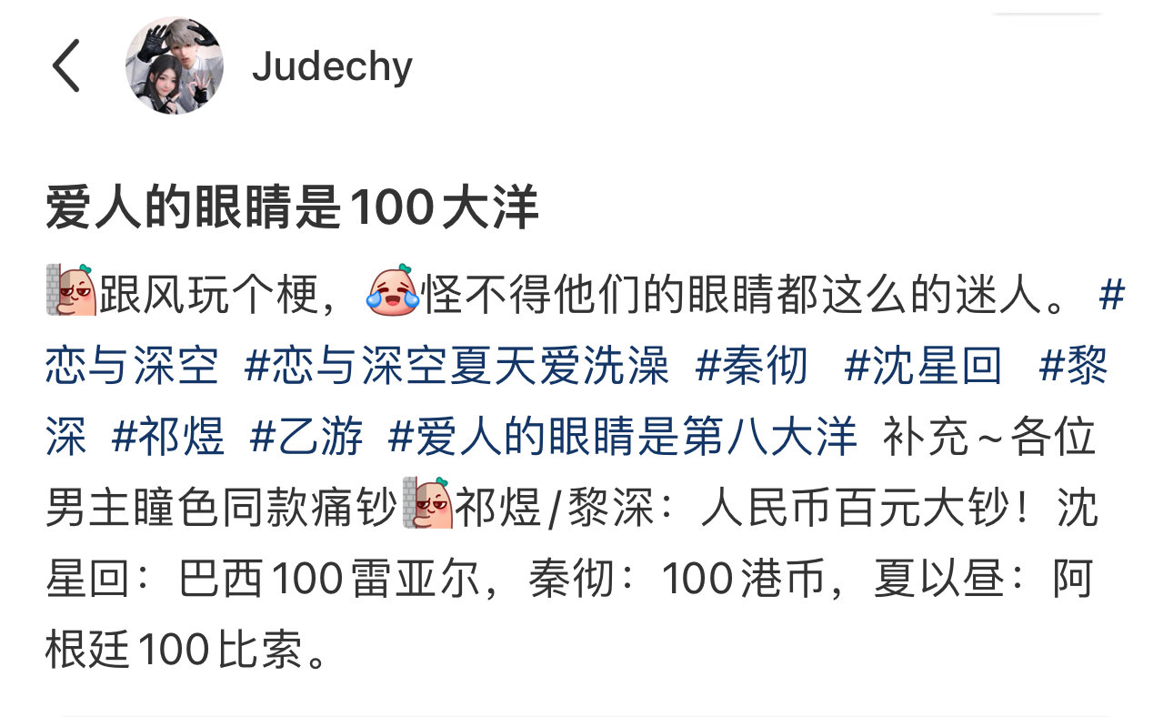 爱人的眼睛是100大洋#恋与深空眼睛充满金钱# #恋与深空#