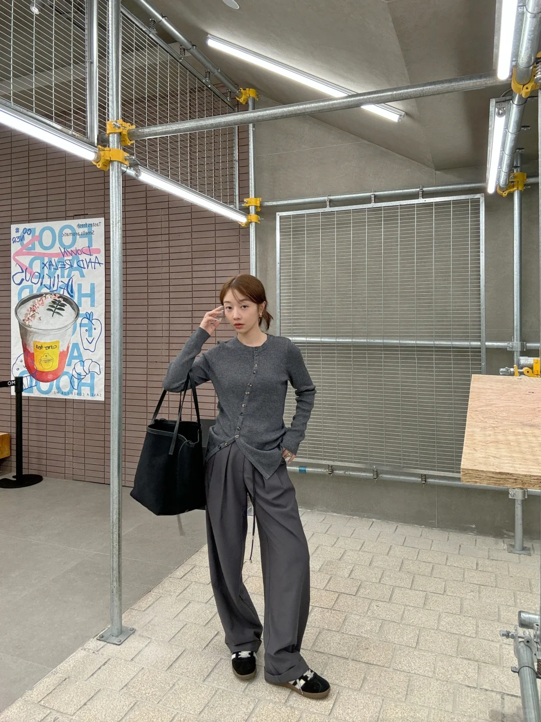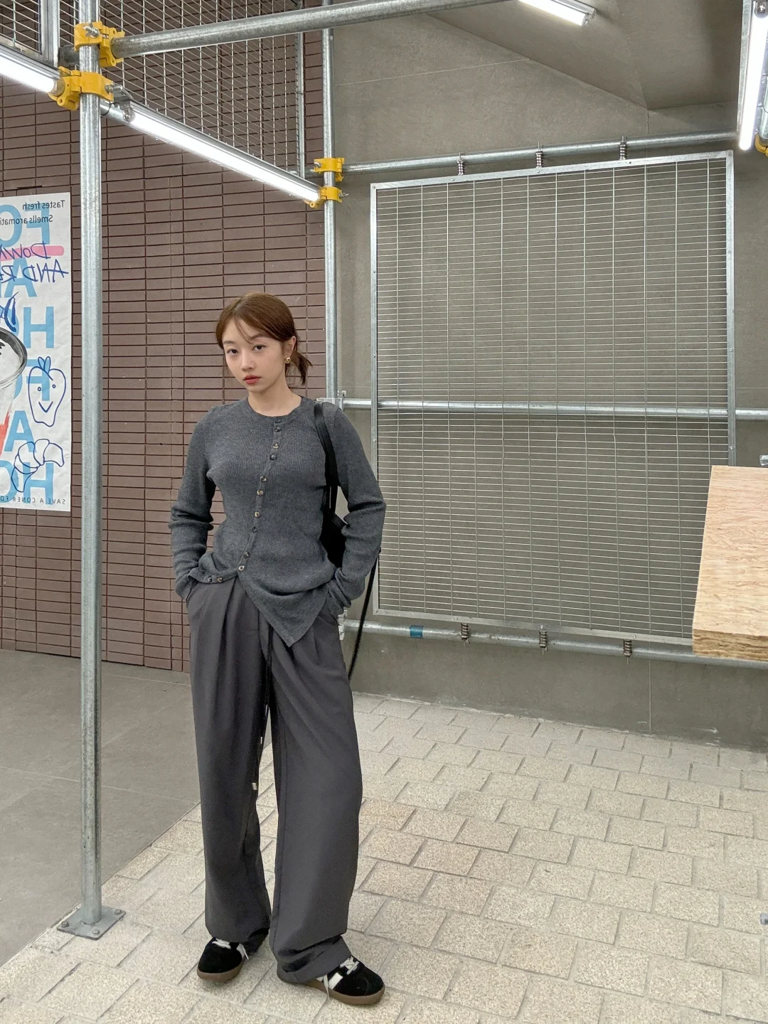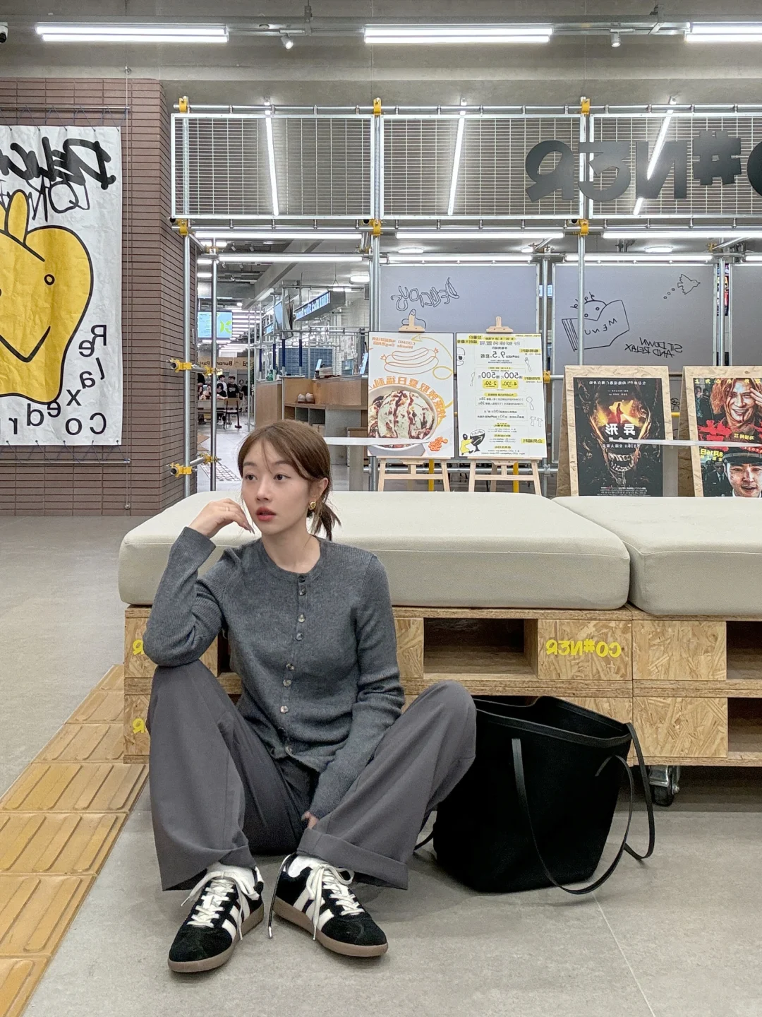 纯灰针织搭球鞋,日常是够休闲,但想正式点?难哦,除非配饰能变魔术,不然这“高级感”得靠场合假装了。