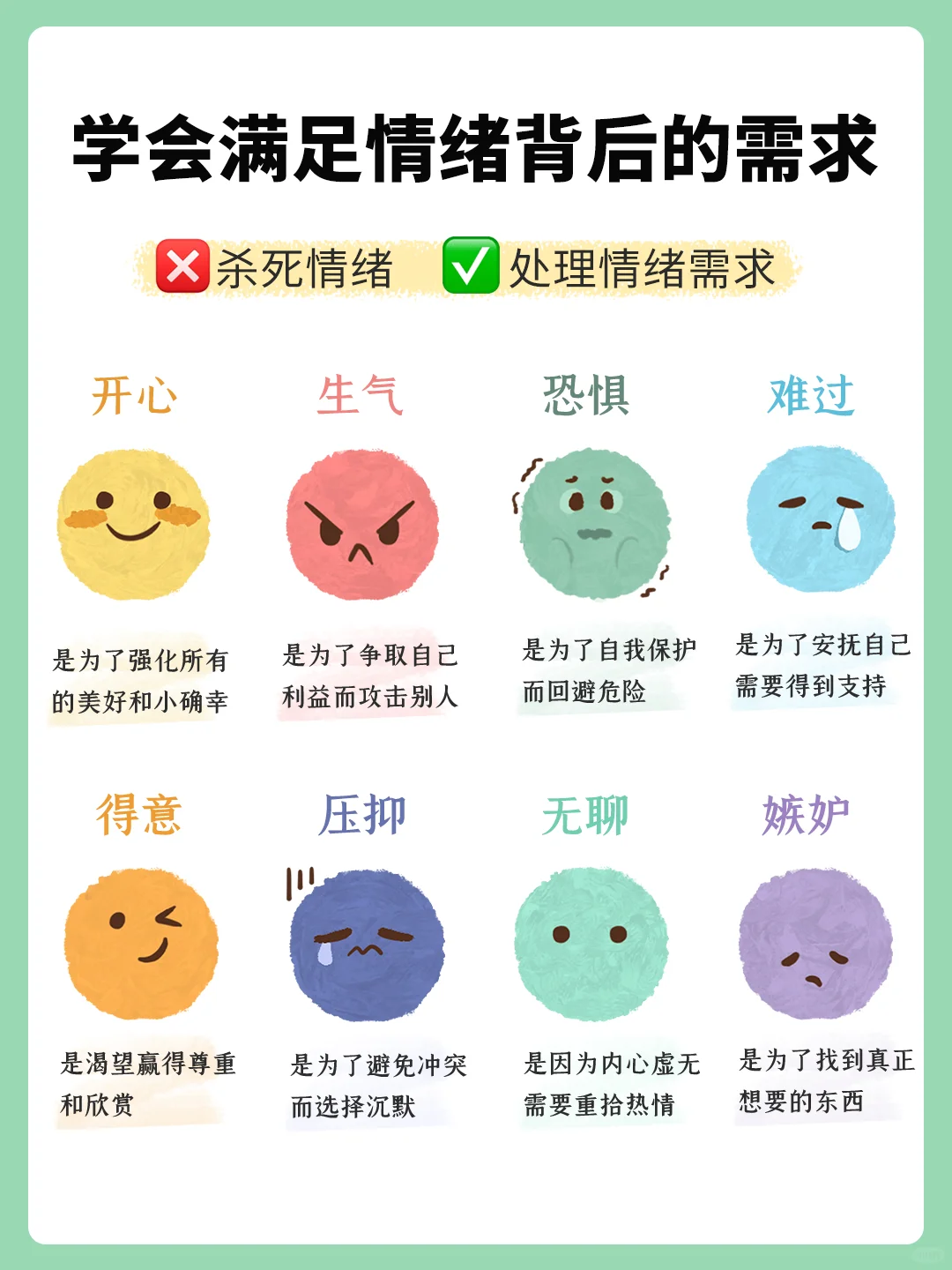 💡这也是心理学领域的一个理论:情绪的背后是需求。当我们感受到情绪时,不妨向内问自己:我现在需要的是什么?