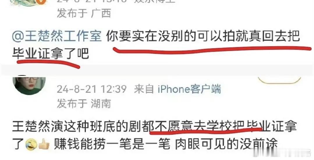 王楚然粉撕工作室那儿捡到的瓜她没有毕业证?