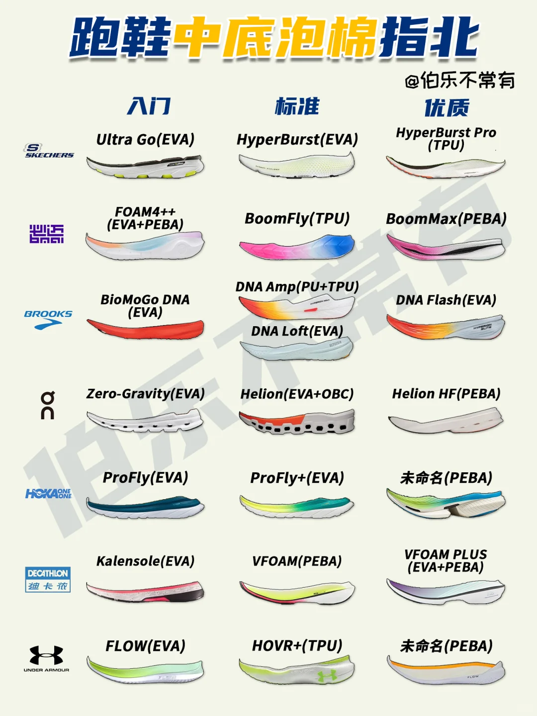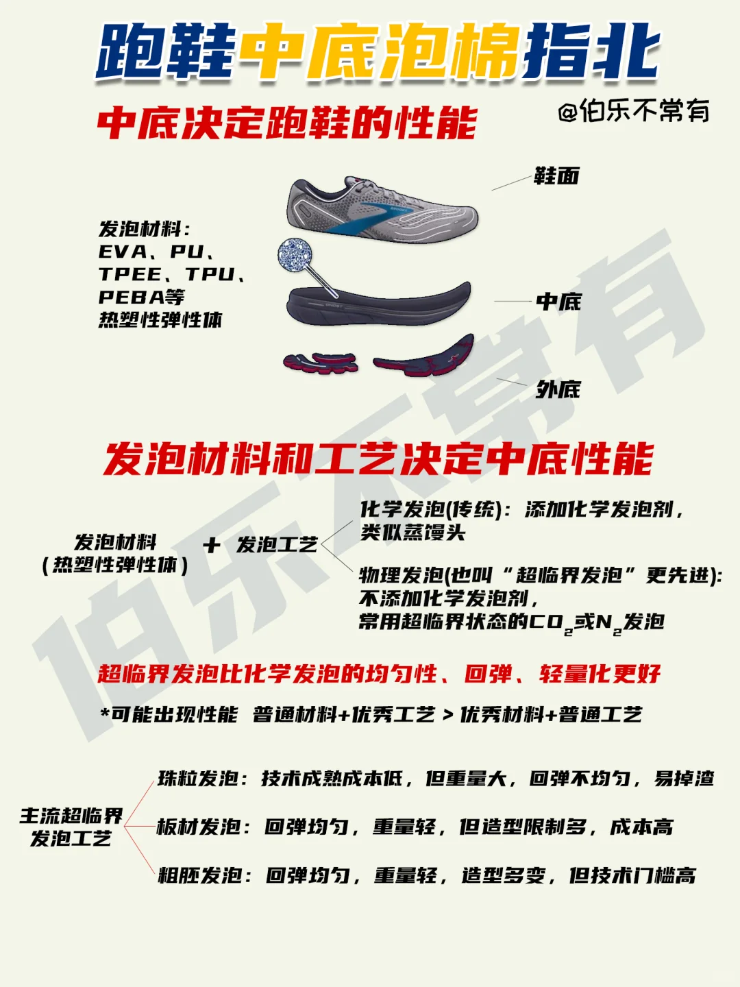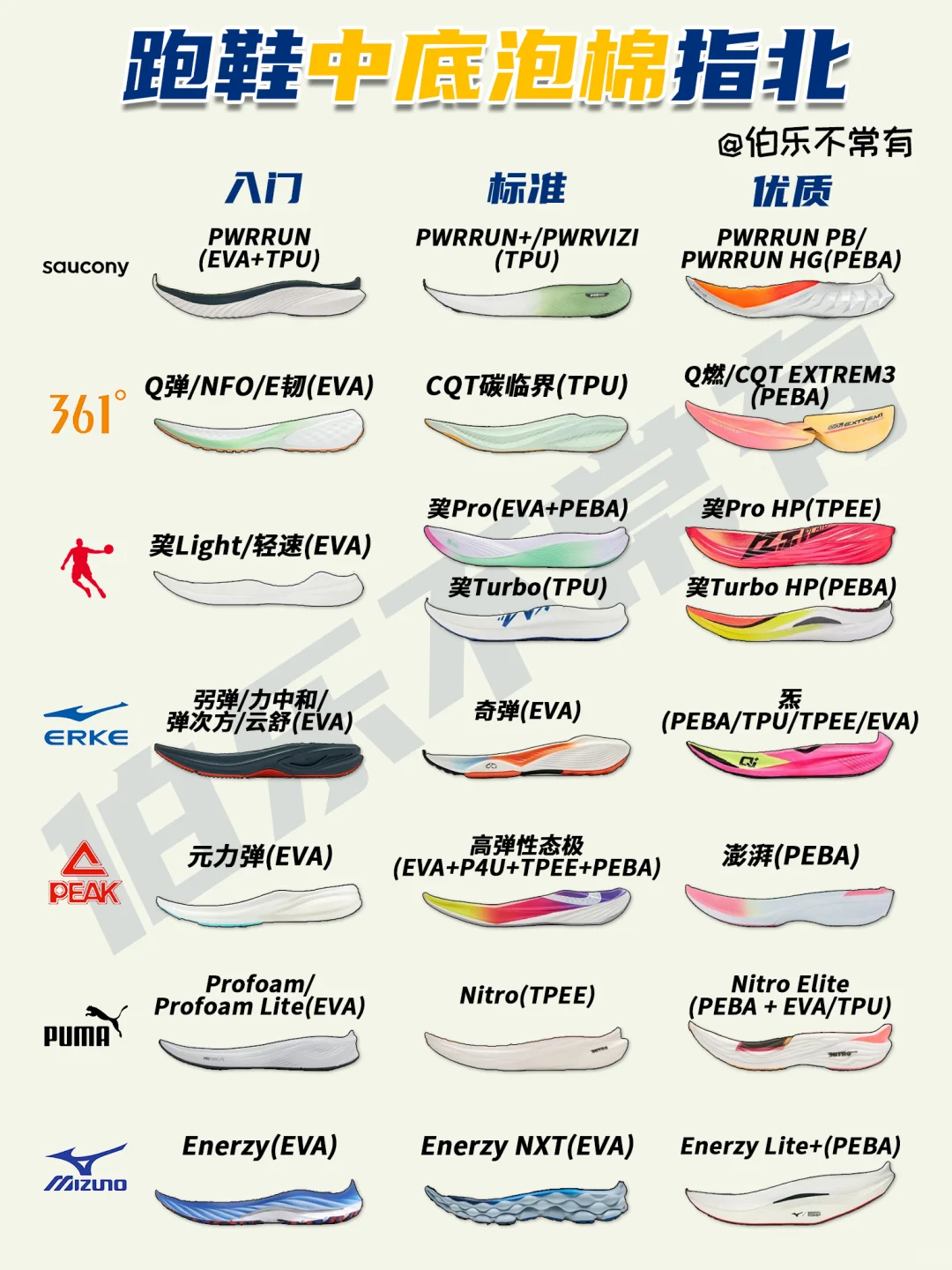 伯乐为大家精心准备了一份《跑鞋中底泡棉指南》,盘点目前国内外各大跑鞋的主流中底和对应的材质👟希望能成为你选购跑鞋时的参考手册[萌萌哒R]
