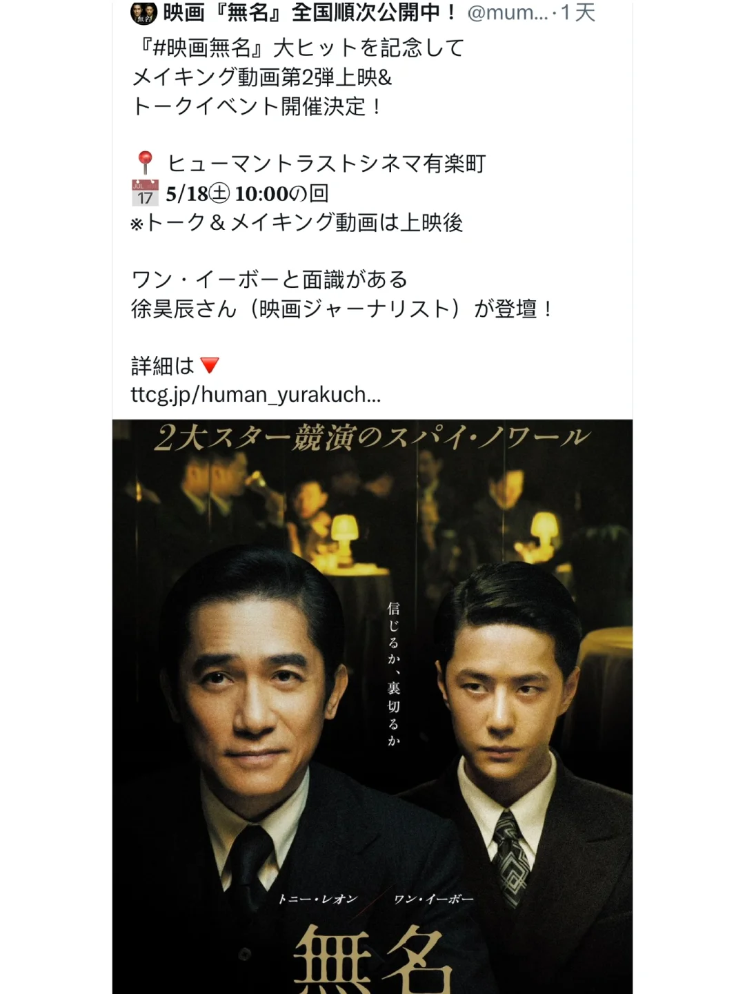 真牛!《無名》日本談話活動門票秒沒🥳🥳🥳